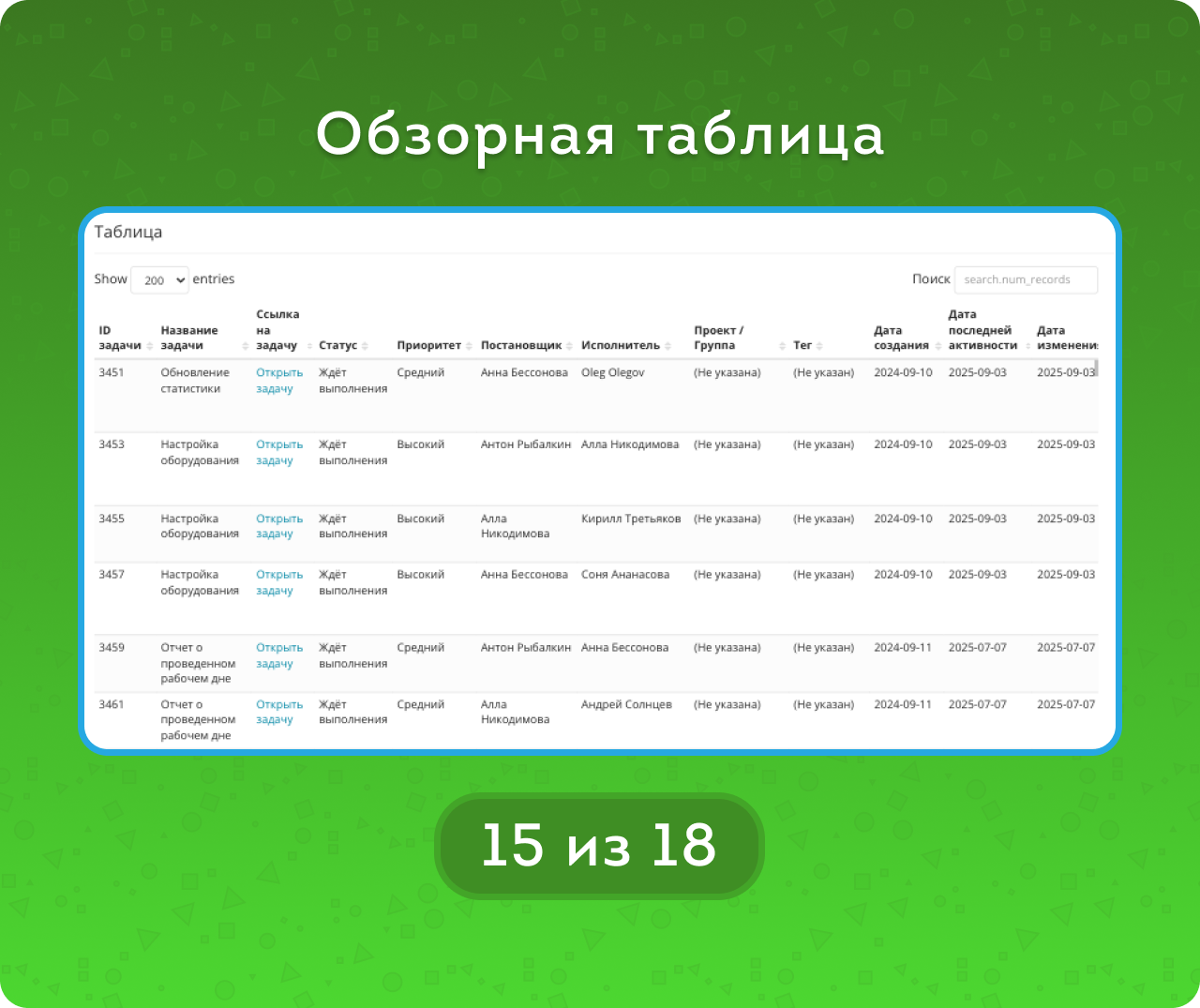 Открытые — задачи со статусами, кроме «Завершено».