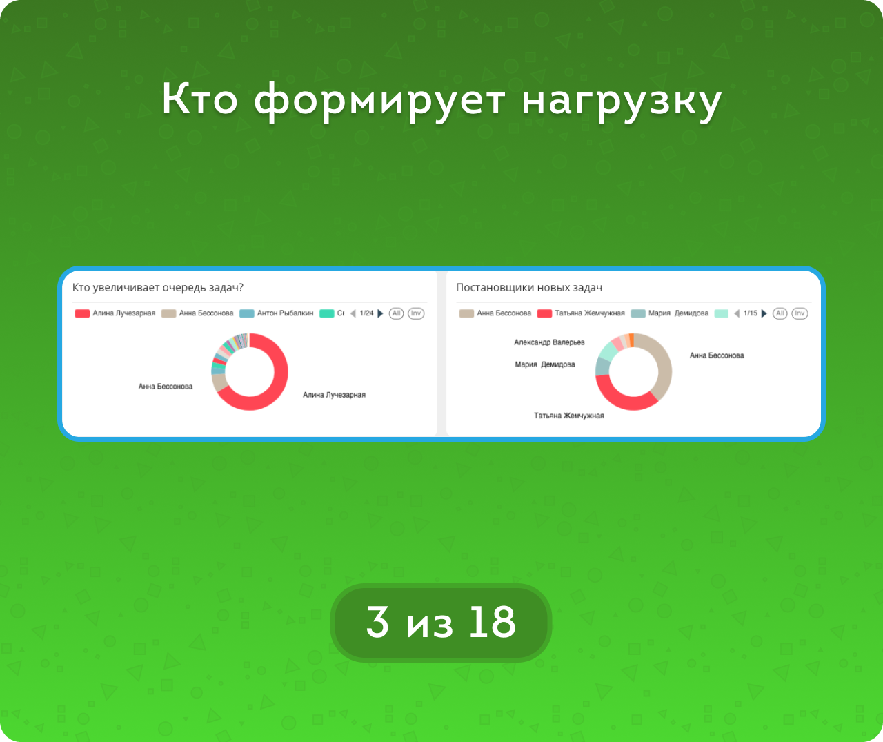 С помощью «рейтинга влияния» в диаграммах и таблицах можно быстро понять распределение задач: кто наиболее загружен, кто больше всего закрывает задачи, а кто – чаще задерживает процесс.