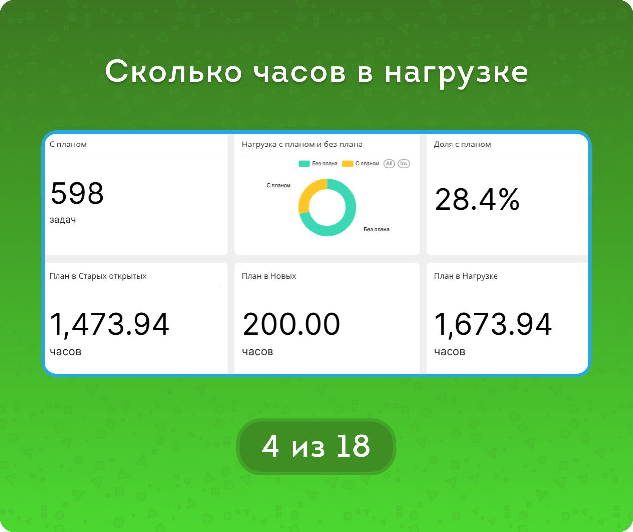 Вкладка «Нагрузка» отвечает на вопросы «Сколько задач в нагрузке и сколько в них плановых часов?»