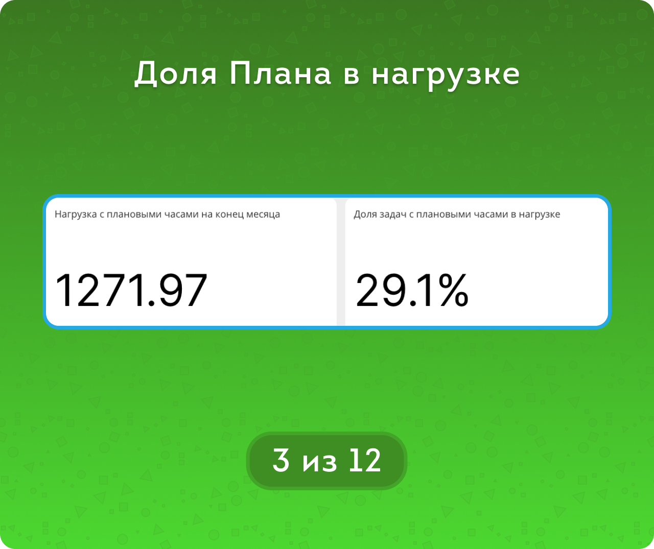 Доля задач с плановыми часами в нагрузке – процент задач с заданным плановым временем от общего числа текущих задач.