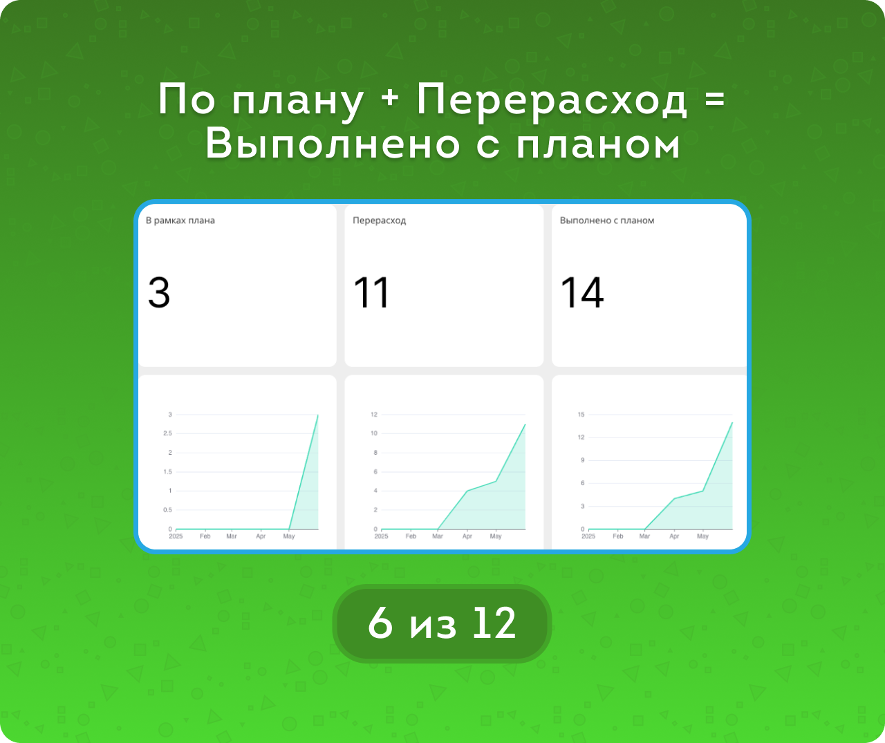 Для наглядности перерасход и соблюдение плана отображаются на отдельном графике с динамикой.