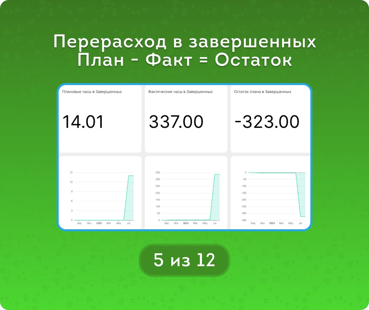 Сравнительный график «План + Факт» наглядно отражает, в какие периоды команда укладывалась в нормы, а когда — выходила за рамки.