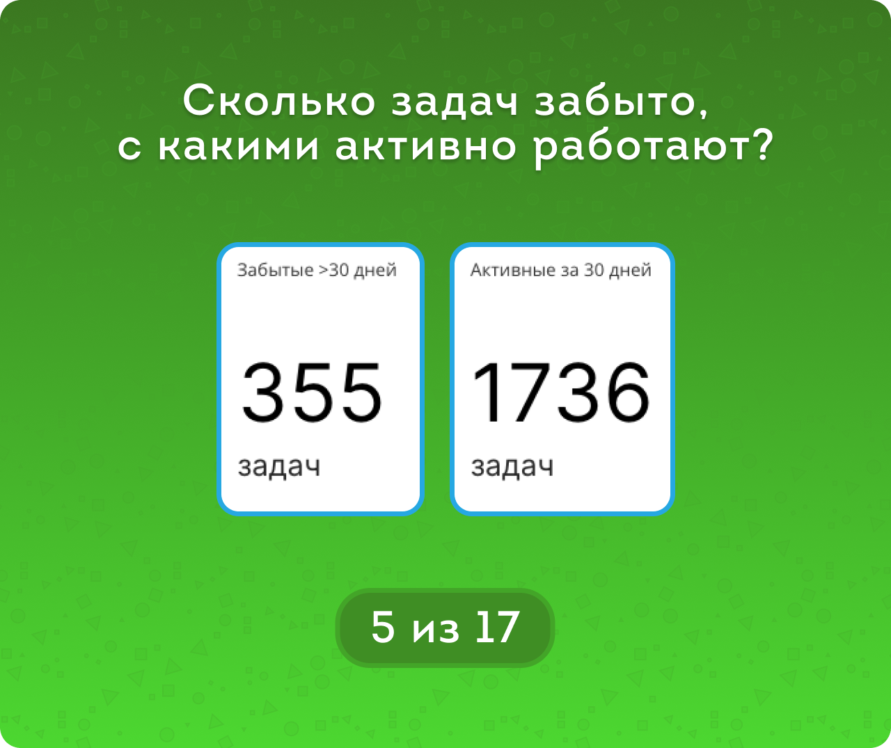 метрикам Статусов и метрикам Активности (Активные / Забытые / Завершенные),