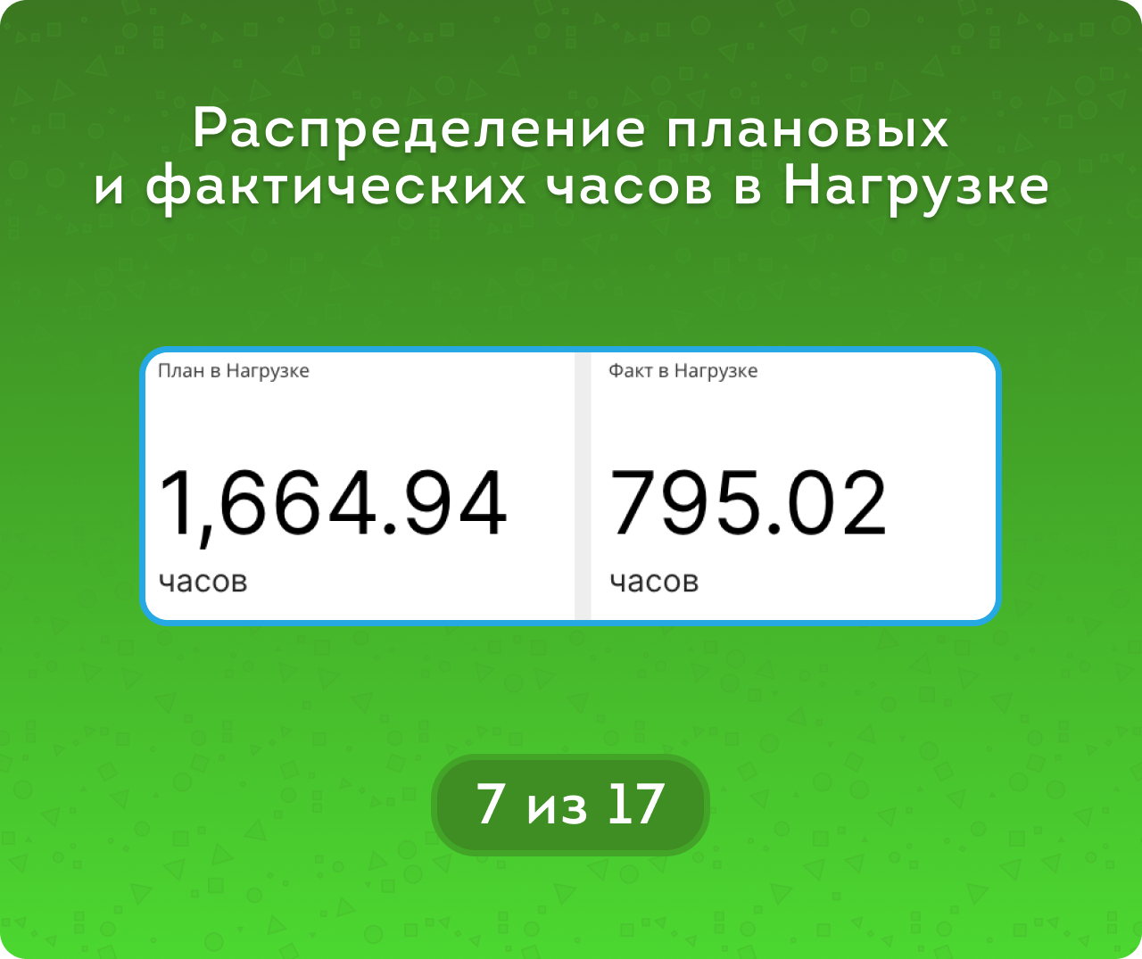 В отчете видно плановые, фактические часы и остаток плана по задачам. Данные берутся из полей «Выделено» и «Затрачено» и наглядно отображаются в графиках, диаграммах и таблицах. Это помогает руководителю сразу понять, где трудозатраты соответствуют ожиданиям, а где выходят за рамки. Кроме того, закрытые задачи рассматриваются в контексте дедлайнов (просрочено, вовремя или без срока) и наличия сроков (без плана, перерасход или в рамках плана).