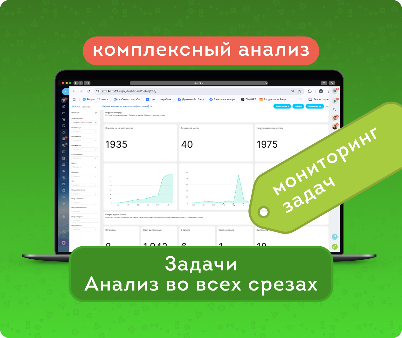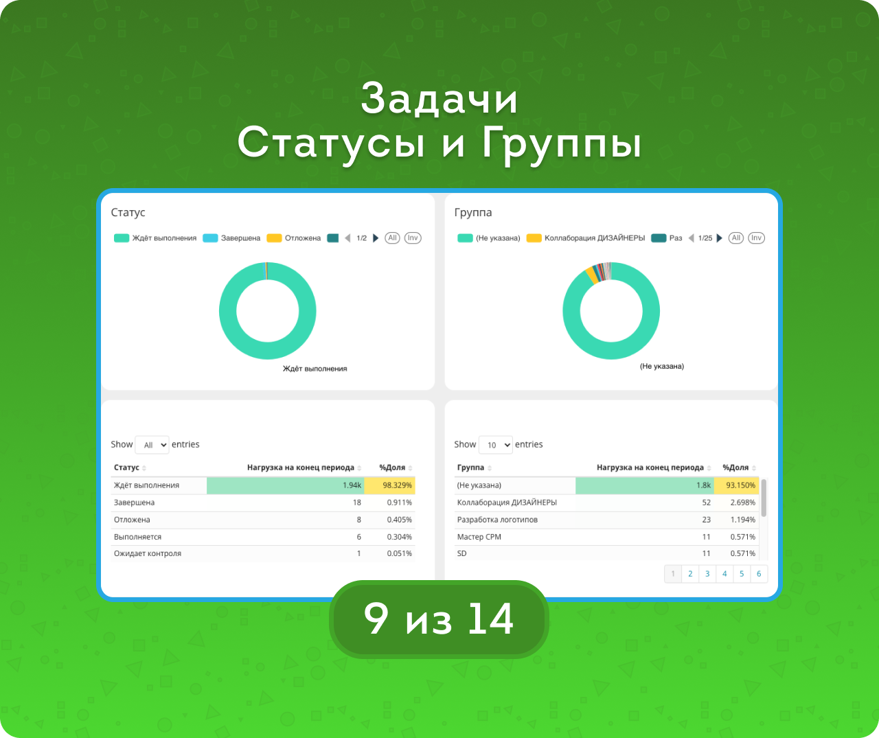 BI-отчет Задачи. Анализ во всех срезах – инструмент для комплексной оценки рабочей нагрузки и контроля всех ключевых показателей.