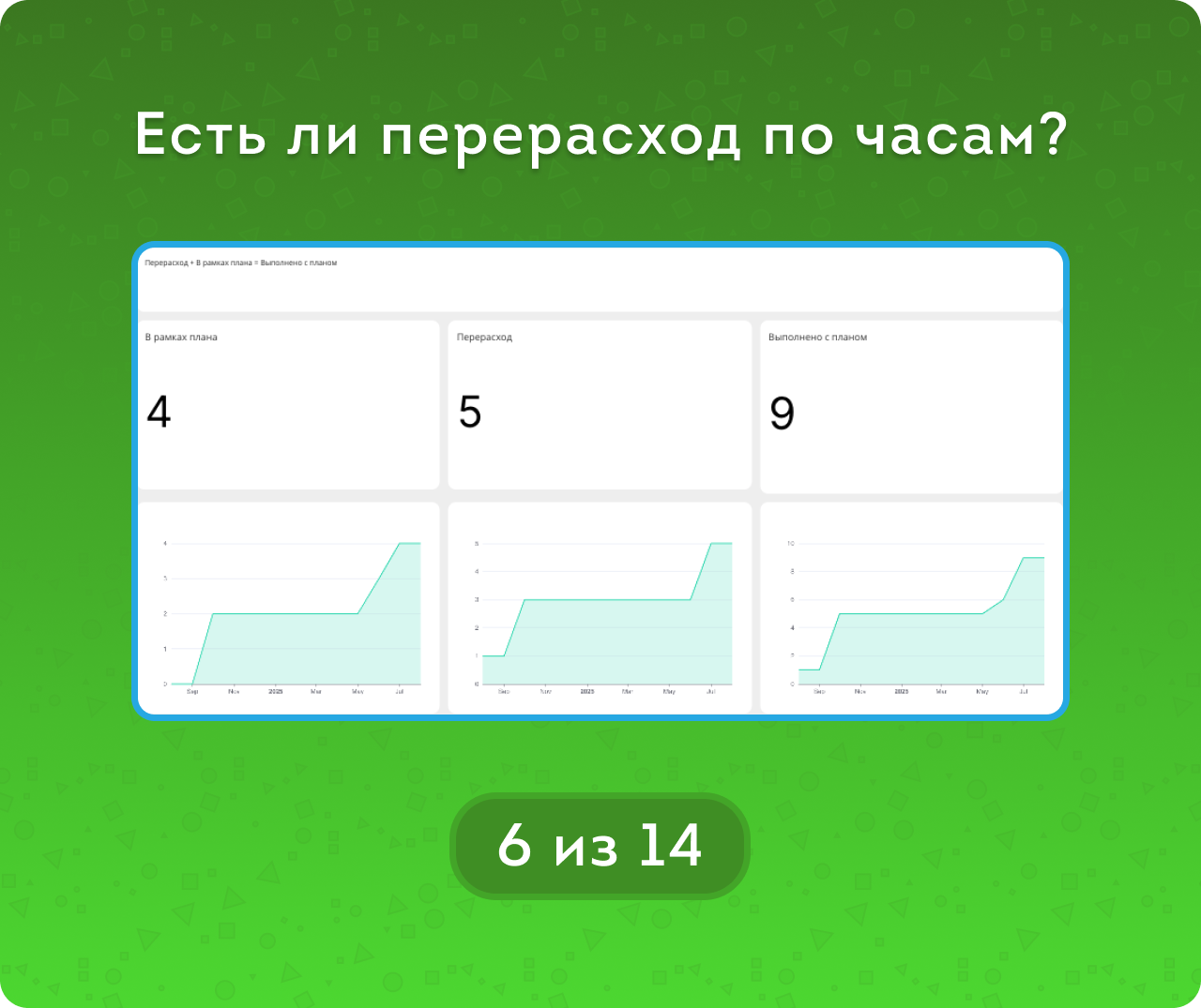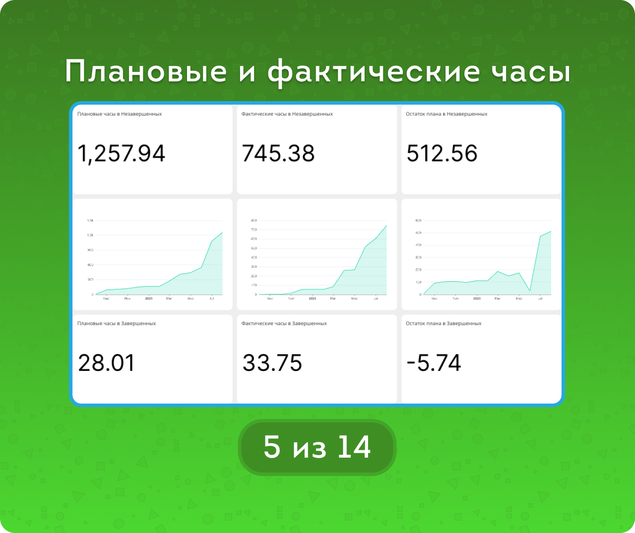 и метрикам Часов (В рамках плана/Не завершена/Перерасход).