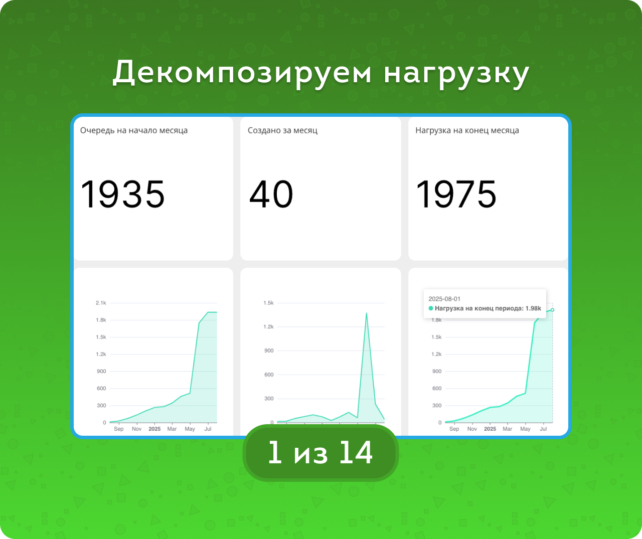 Нагрузка на конец месяца - это сумма очереди (все незакрытые на начало месяца) и новых задач.