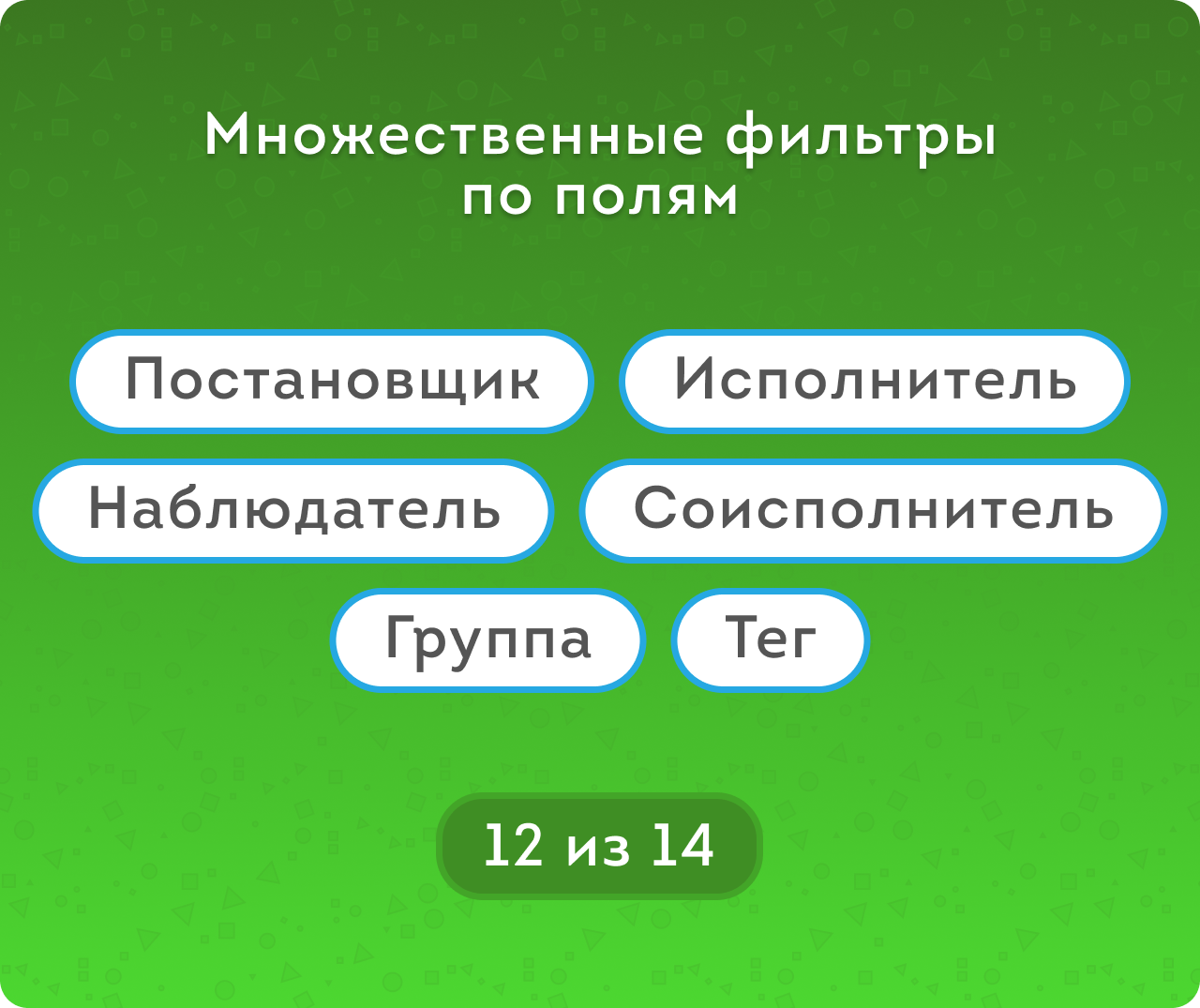Фильтры гибкие — можно выбрать сразу несколько значений, чтобы получить более точную картину. Это особенно удобно, если нужно получить отчет только по конкретному сотруднику или проекту.