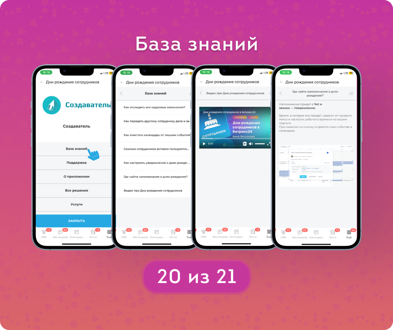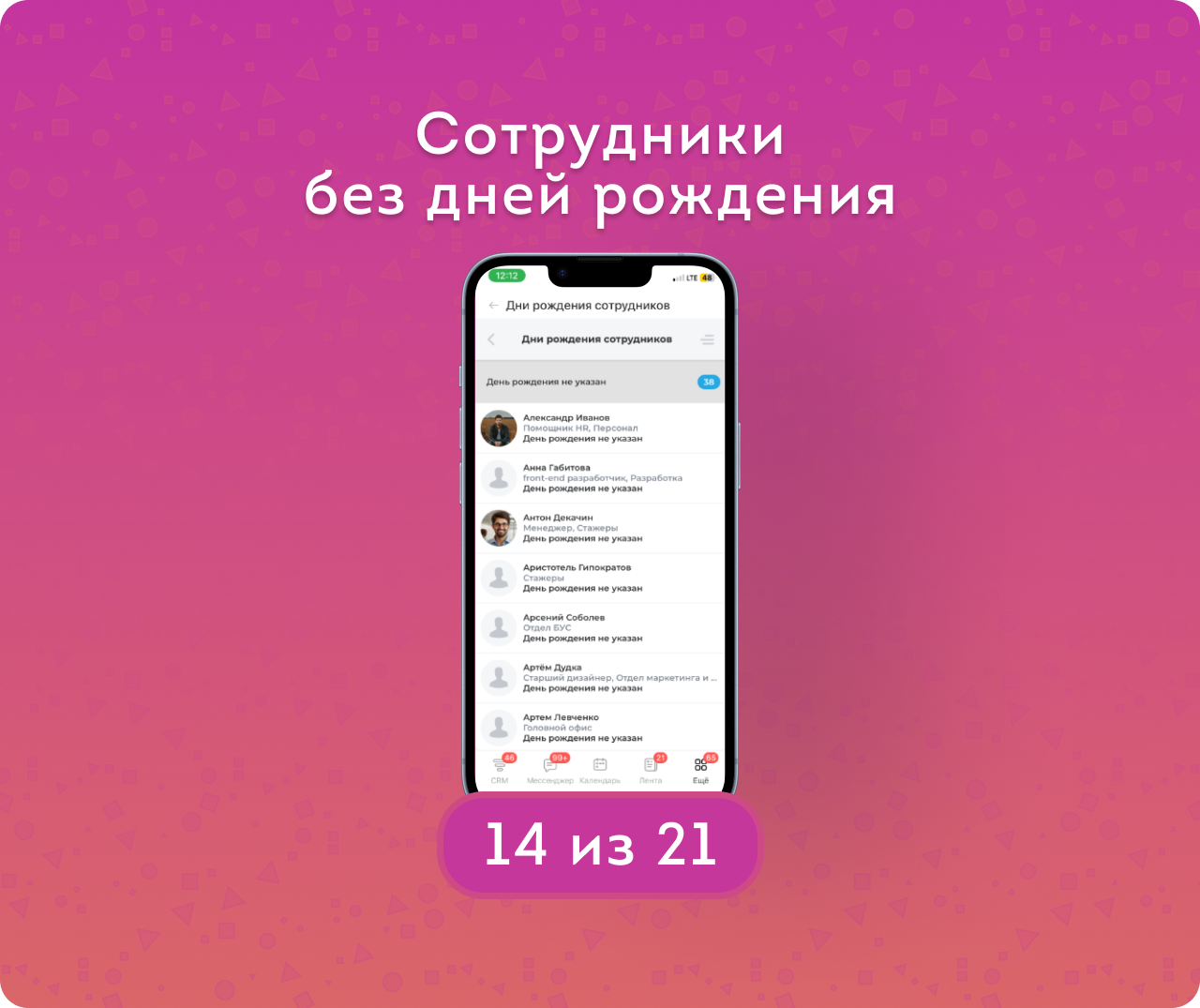 — Дни рождения не только сотрудников, но еще и гостей из коллаб и экстранет-пользователей (а для Клиентов есть отдельное приложение).