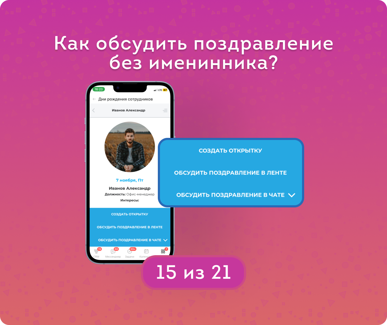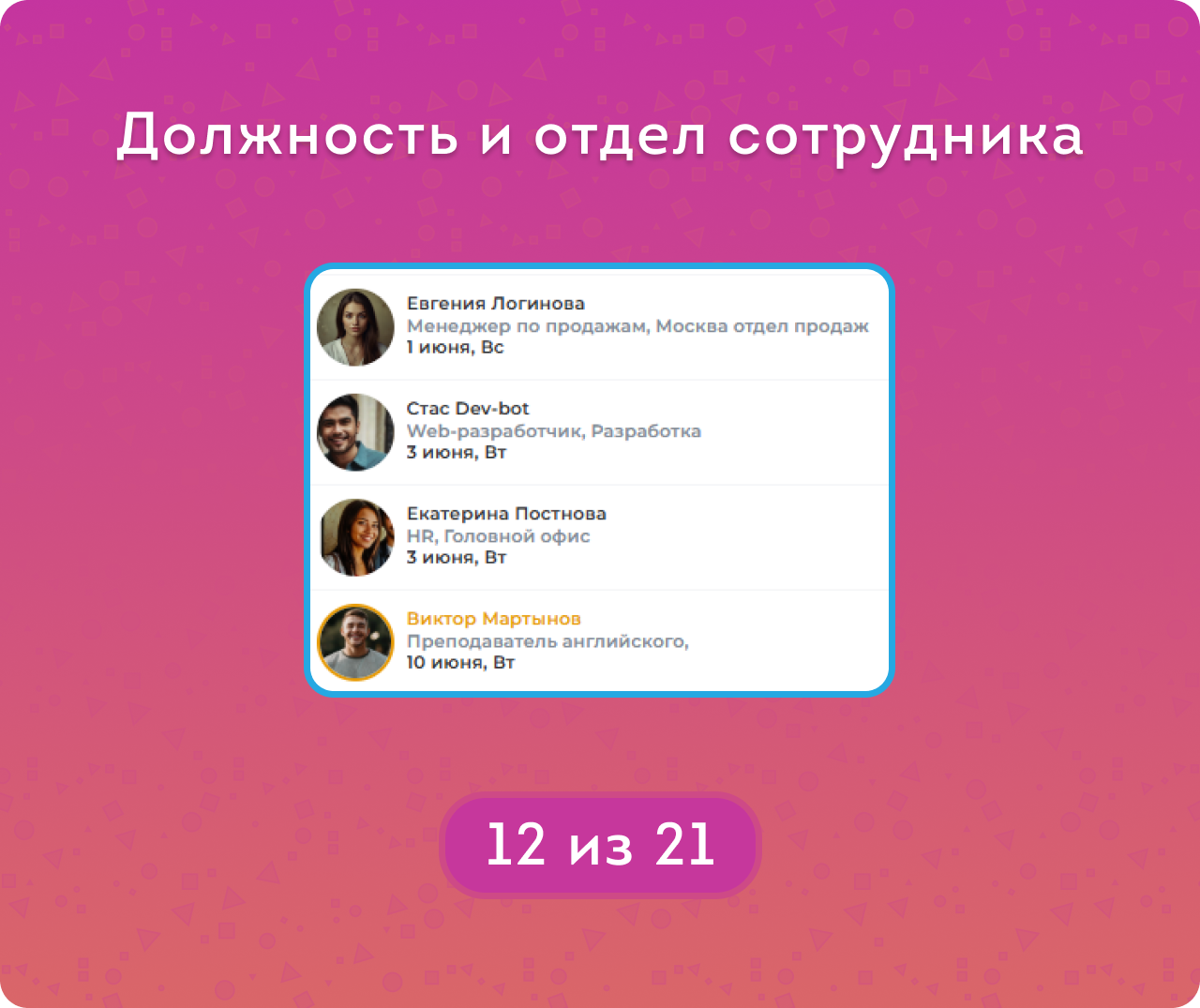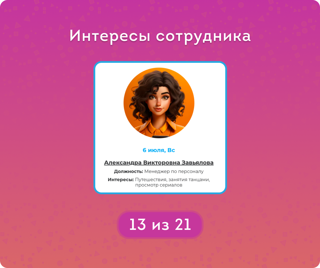 — Отображение должности и отдела, а также интересов сотрудника — чтобы поздравление было искренним и особенным.
