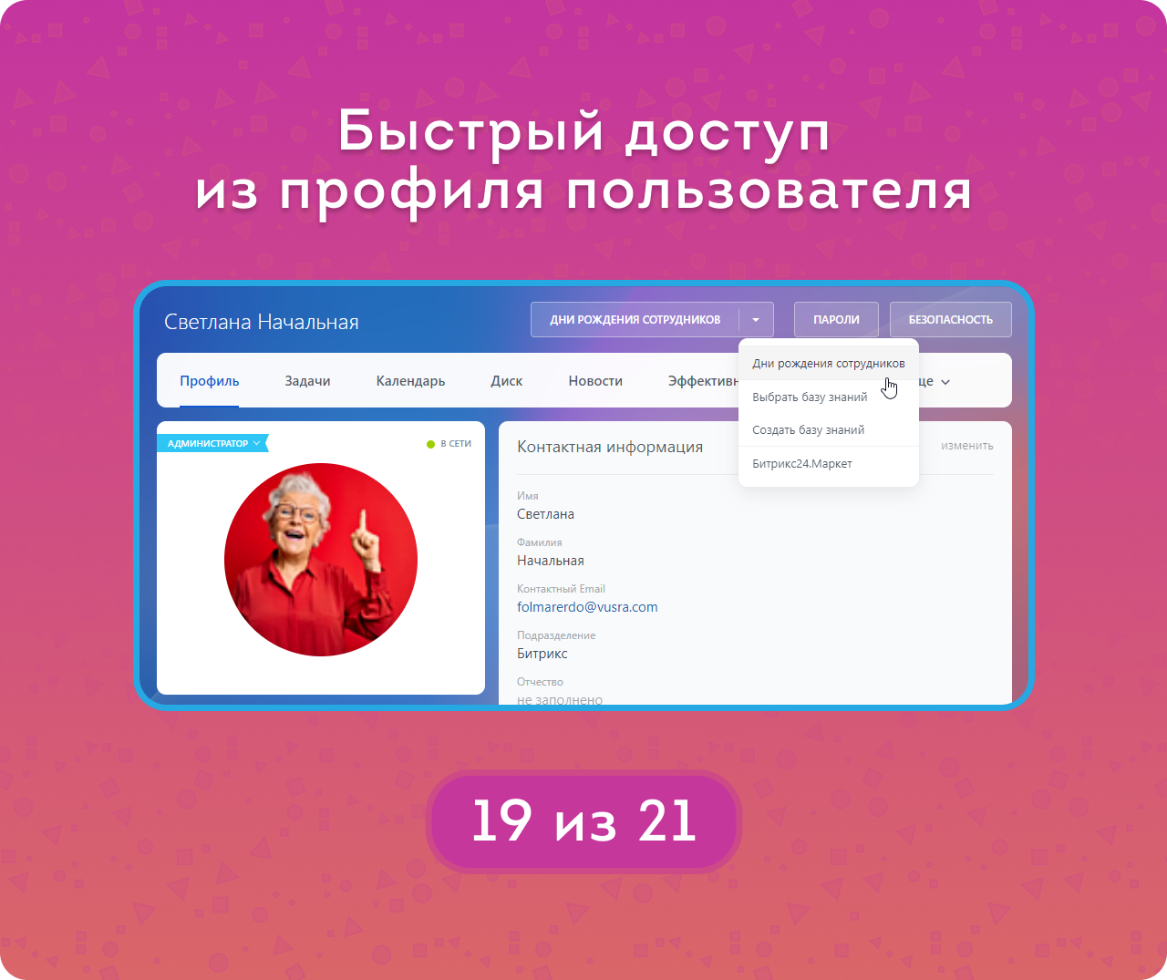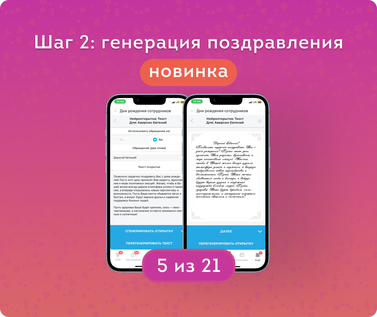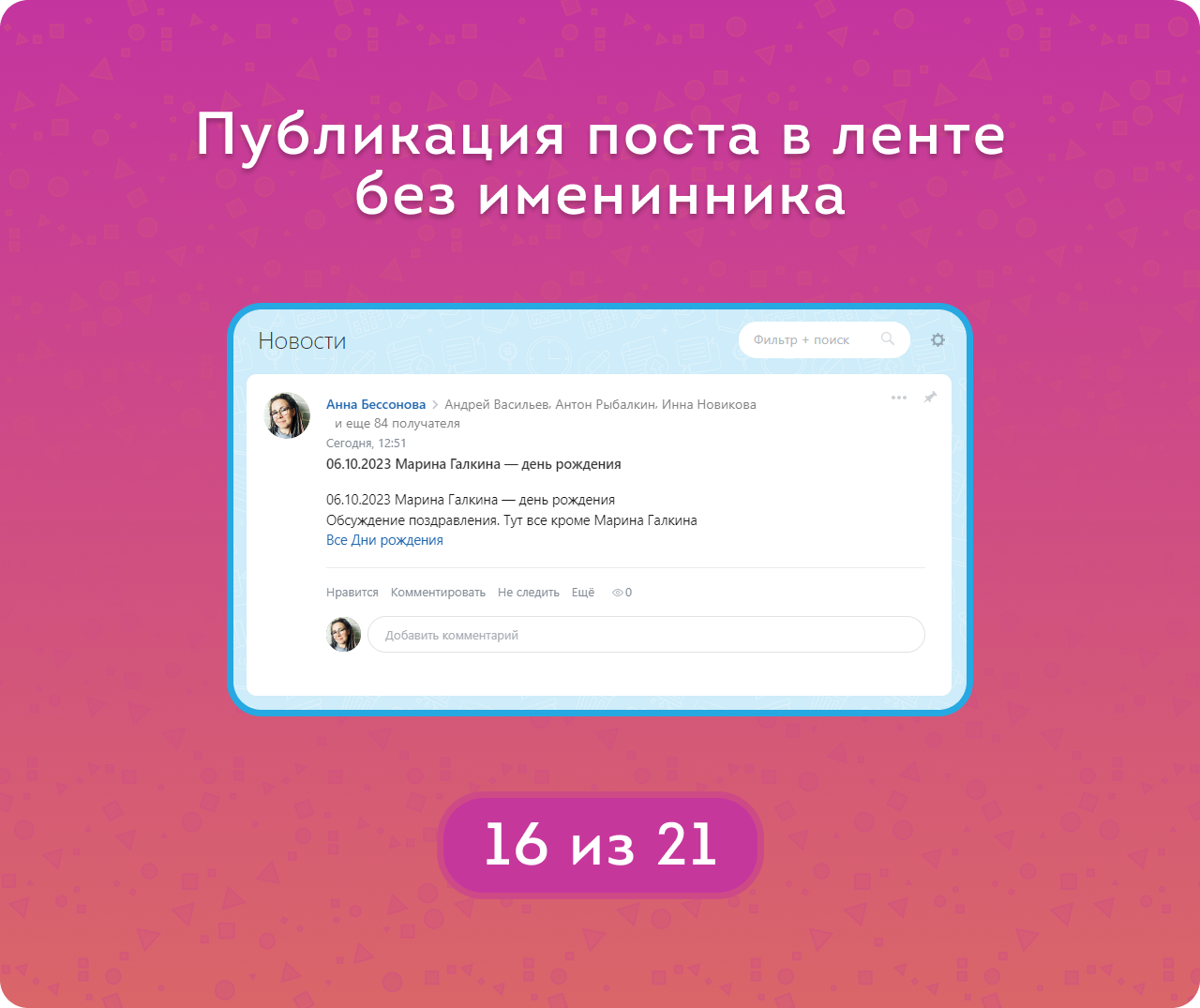 — Отображение должности и отдела, а также интересов сотрудника — чтобы поздравление было искренним и особенным.
