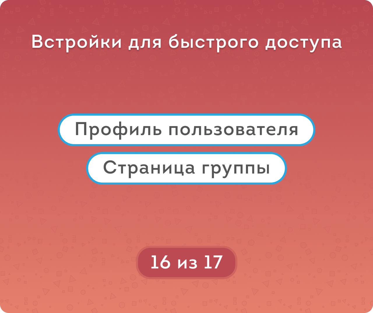 Для быстрого доступа к приложению предусмотрено две встройки: в профиле пользователя и на странице группы. А также База знаний — справочник полезной информации.