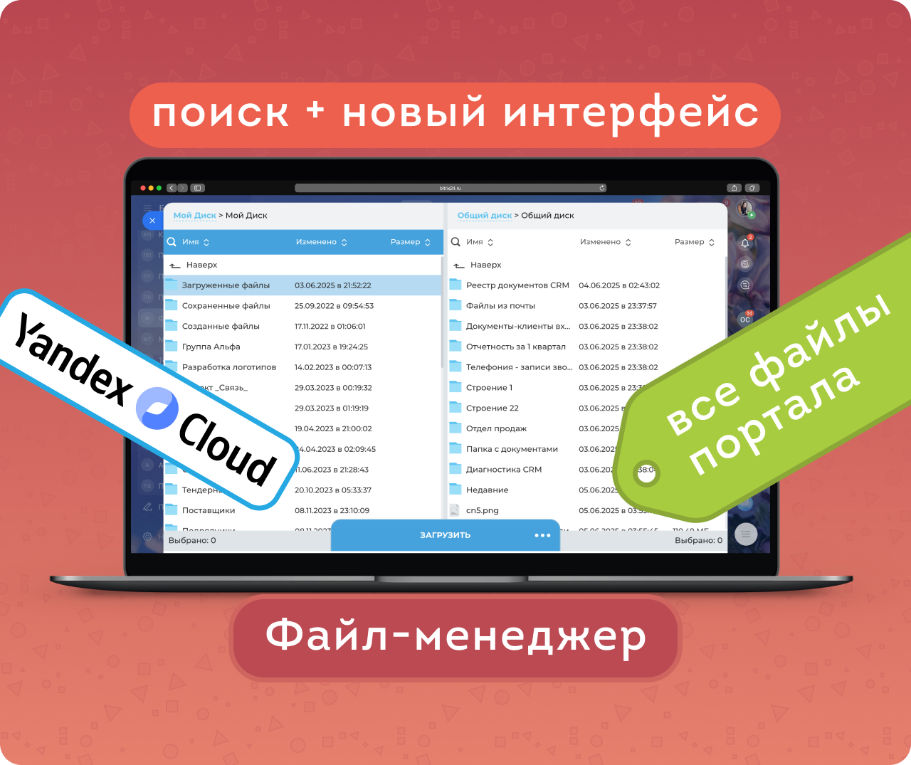 Файл-менеджер — новое приложение для удобного и эффективного управления файлами и папками в Битрикс24. Решает ограничения типового интерфейса и упрощает работу с Диском.