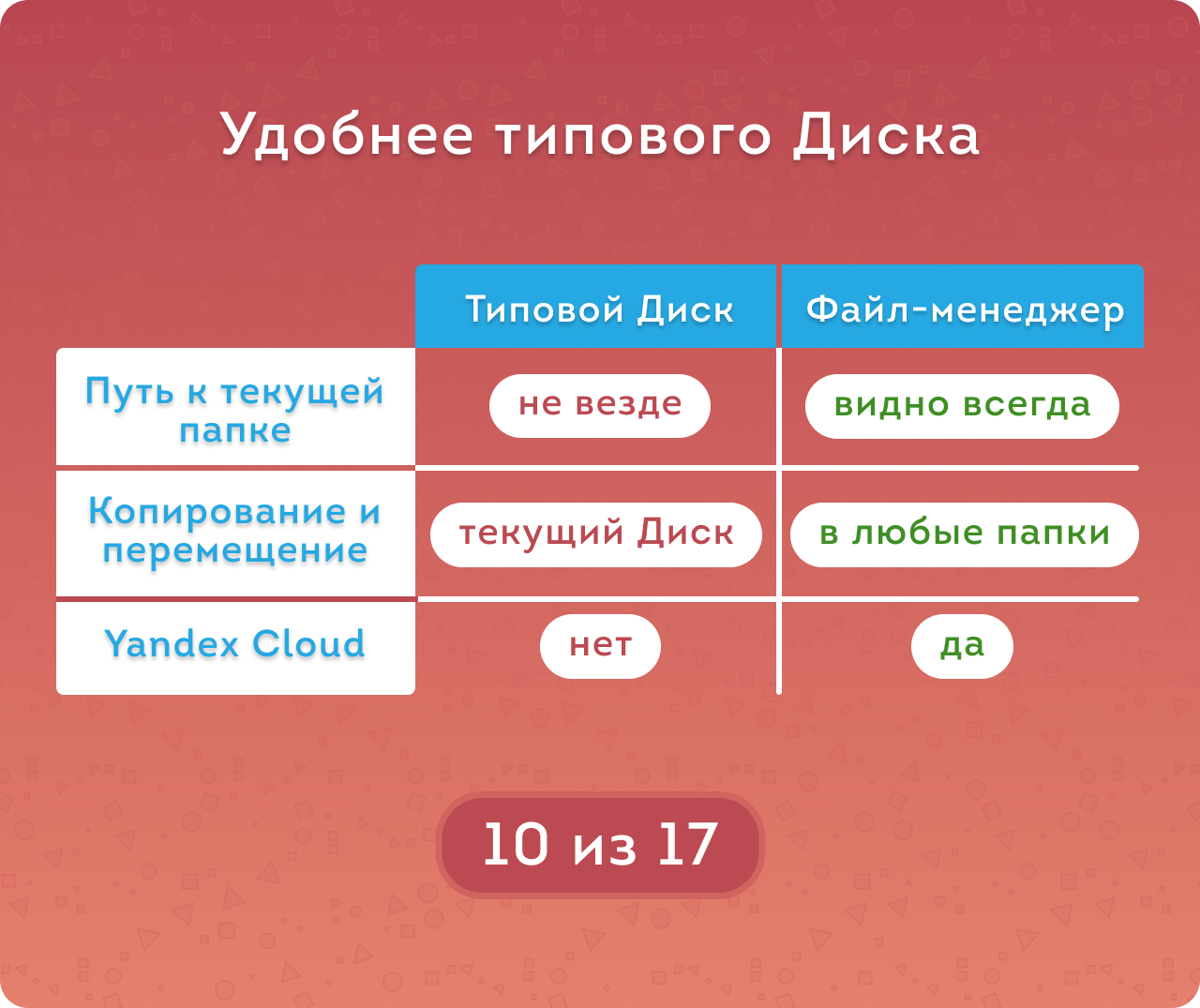 Удобный интерфейс для работы со всеми дисками портала + интеграция с Yandex Cloud