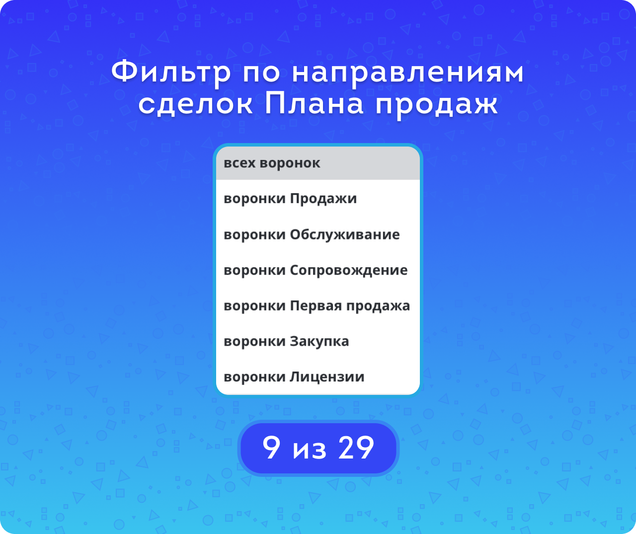 — 06.04.2025: Фильтр по воронкам сделок в Плане продаж
