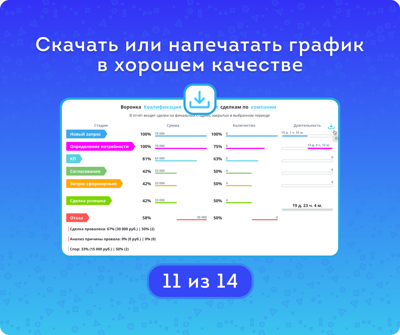 График позволяет быстро выявить этапы, на которых происходят задержки или наибольшее количество отказов. Его можно скачать в хорошем качестве для печати и презентаций.