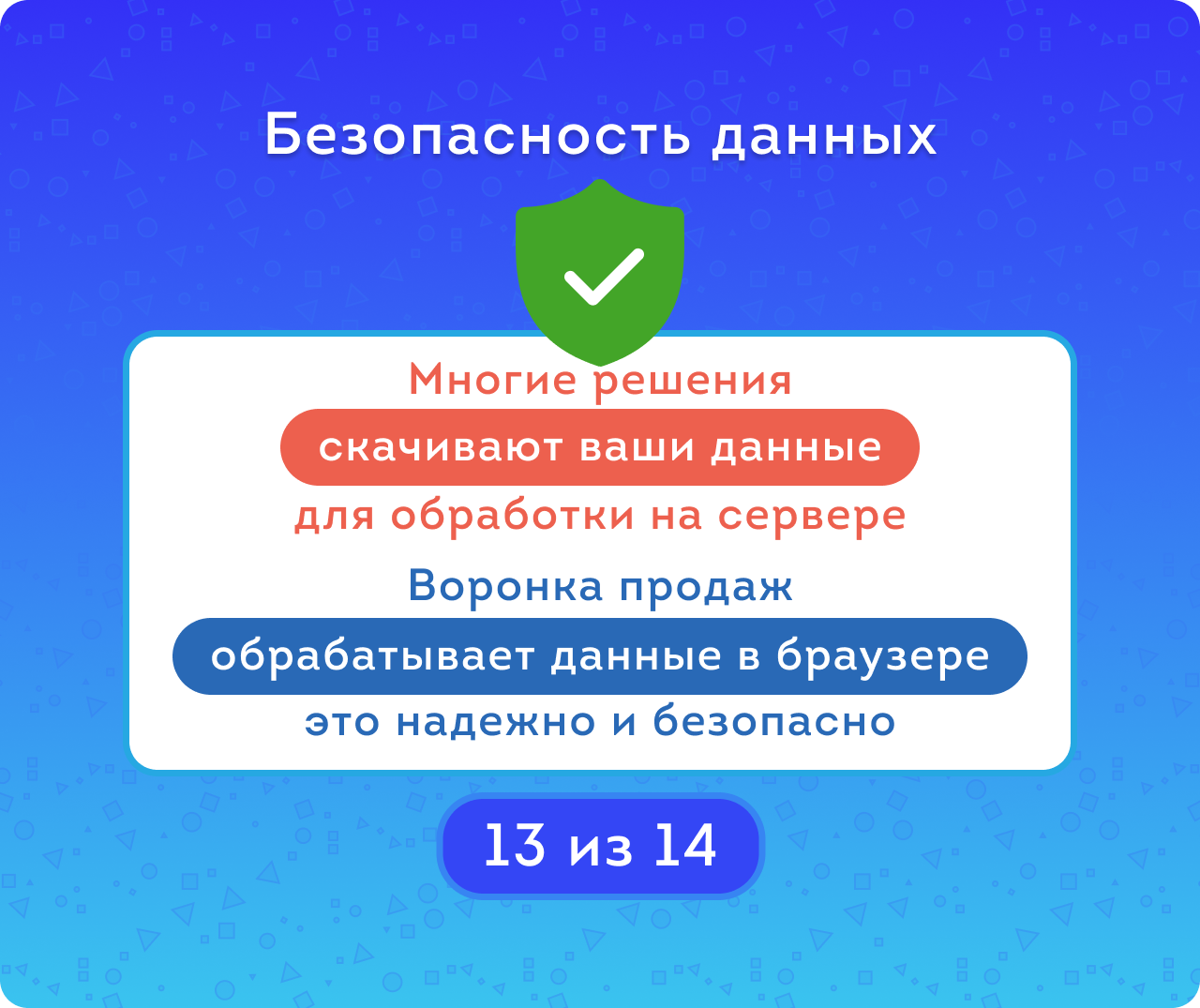 - Локальная (браузерная) обработка данных, без передачи на сторонние сервера.