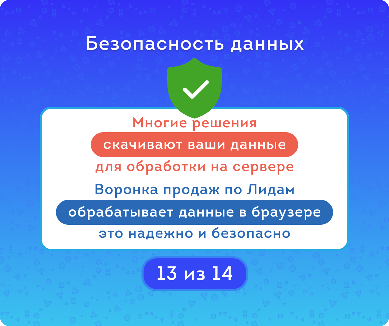 Локальная (браузерная) обработка данных, без передачи на сторонние сервера.
