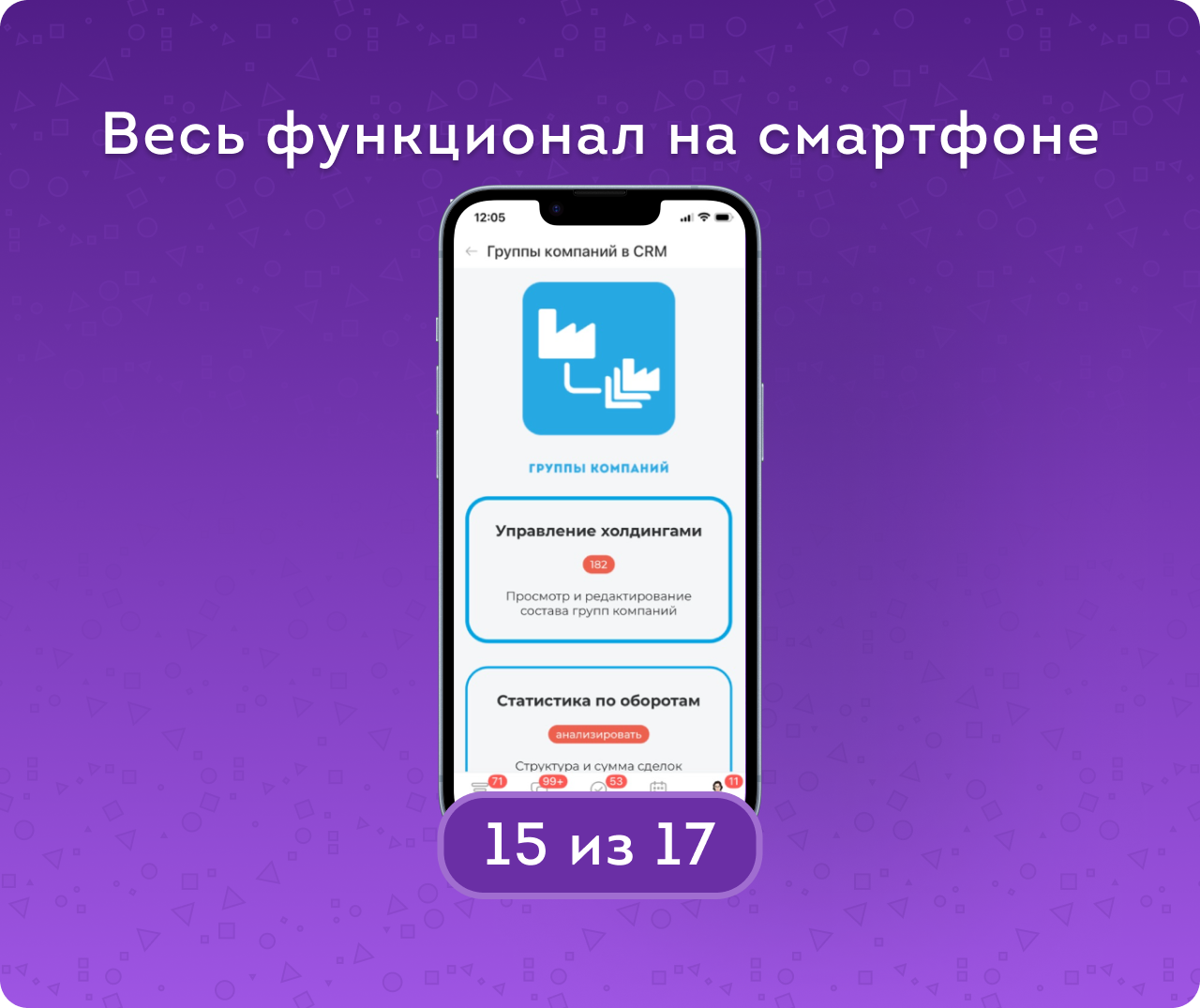 — Анализировать холдинг целиком в режиме «Статистика по оборотам» — видеть полную структуру компаний и общие суммы сделок.