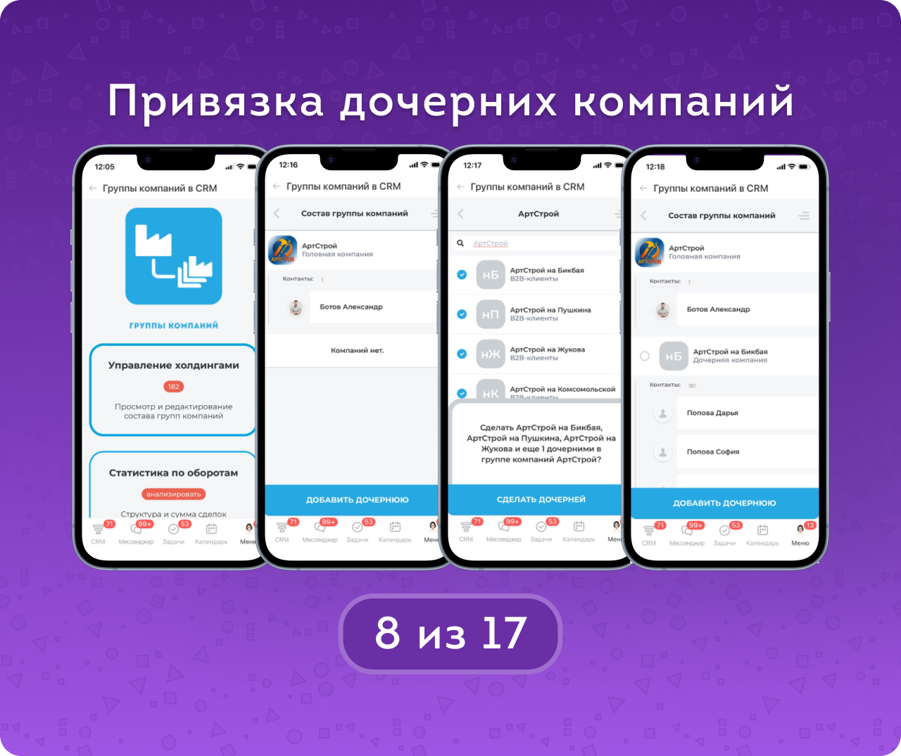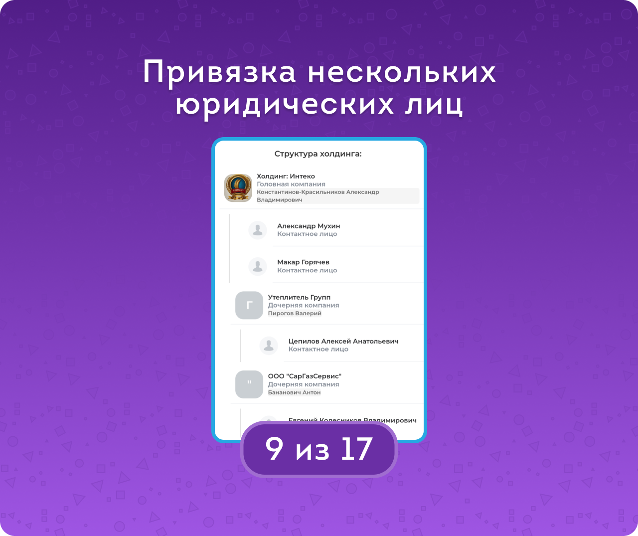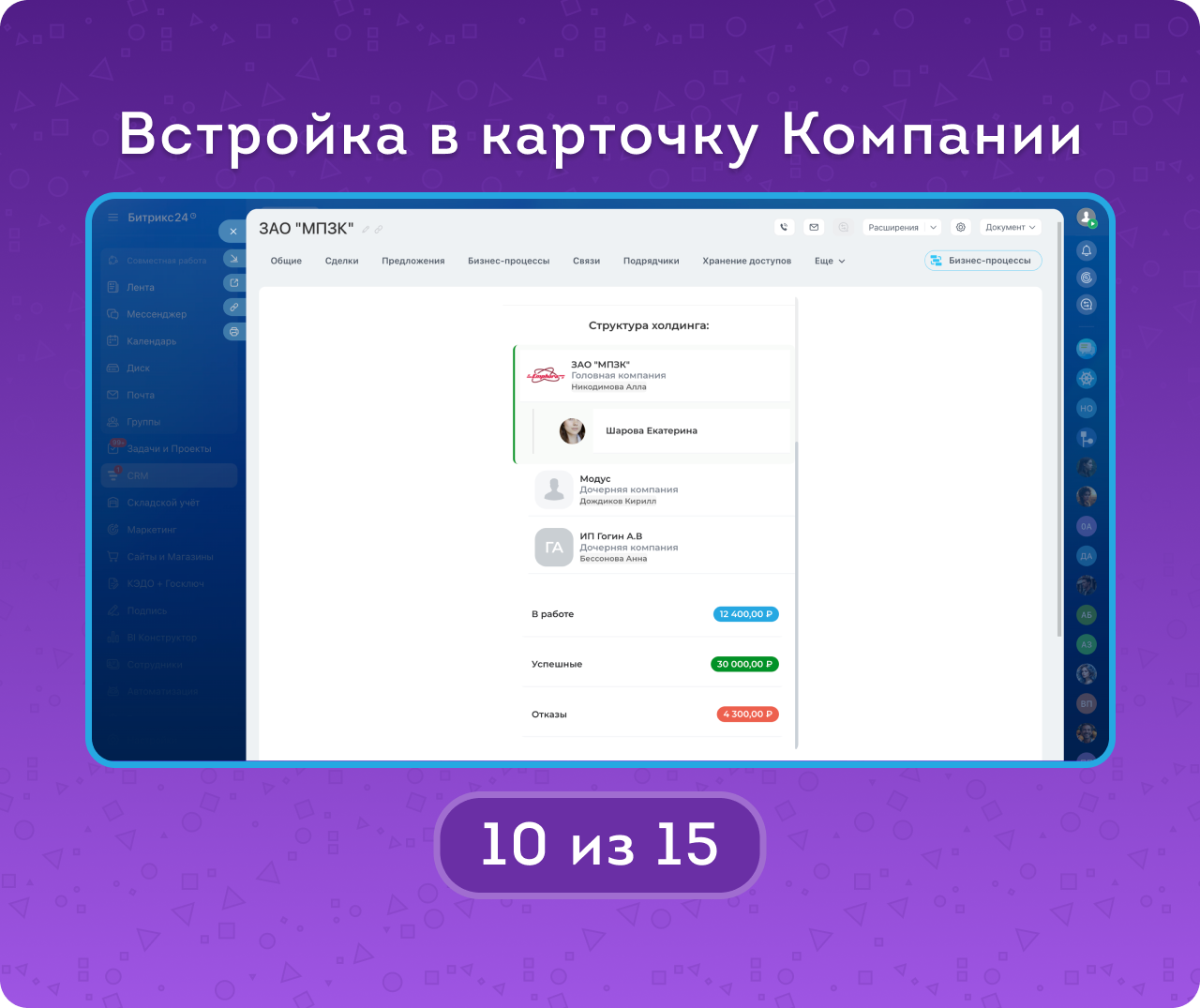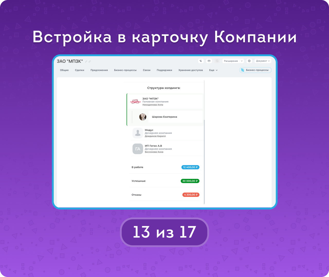 Встройка в карточку компании быстро выделит ее место в холдинге.