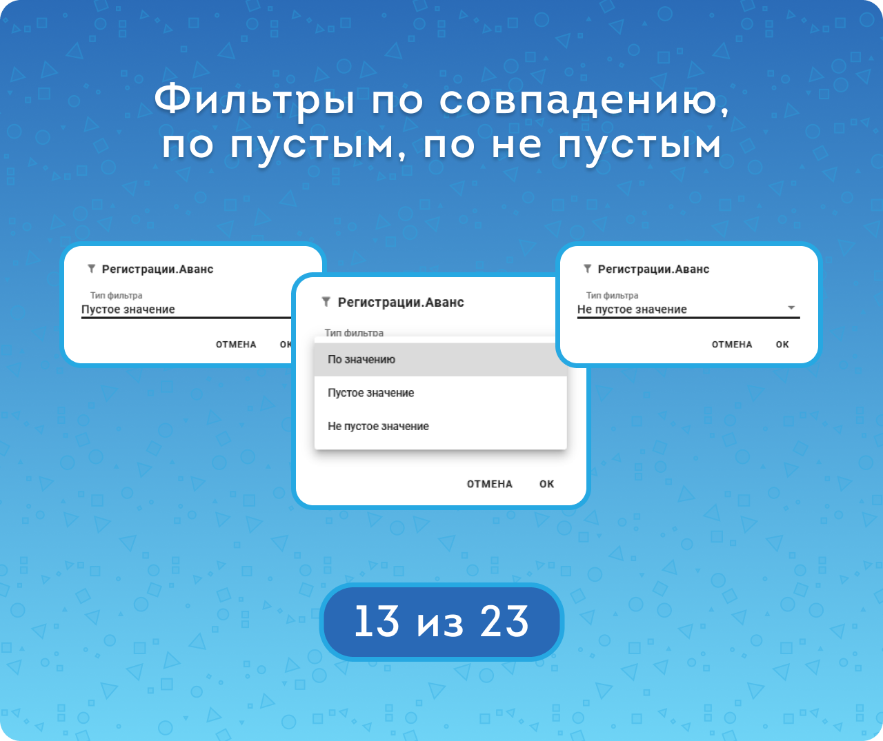 Дополнительная фильтрация (по значению, по пустому и по не пустому значению) поможет точнее настраивать отчёты, исключая лишние данные и фокусируясь только на нужной информации.