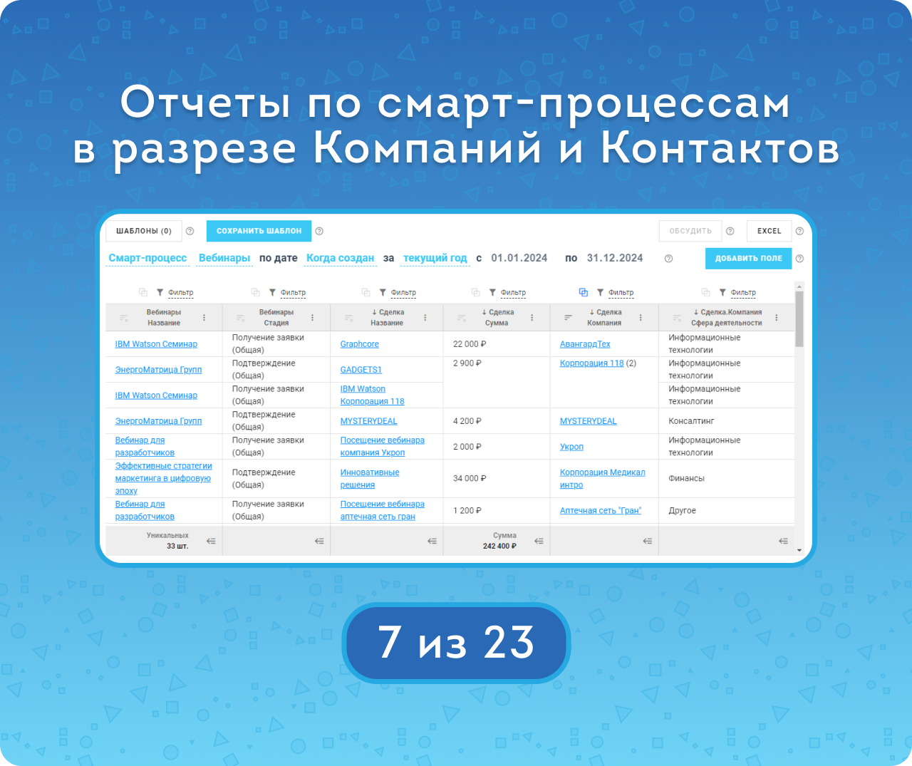 Гибкие отчёты по смарт-процессам и связанным сущностям CRM