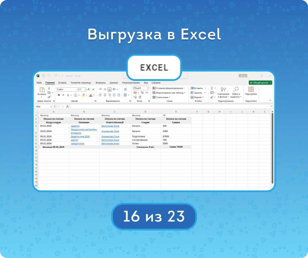 — Выгружать готовый отчёт в Google Таблицы и Excel.