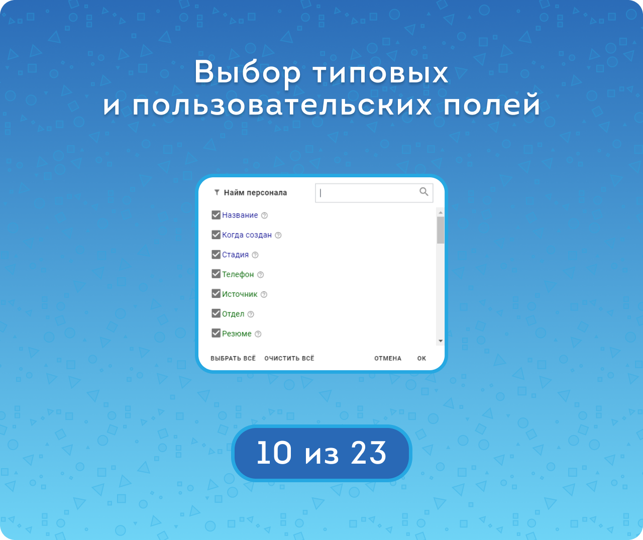 — Выбирать поля сразу в нескольких сущностях. Не только типовые, но и пользовательские.