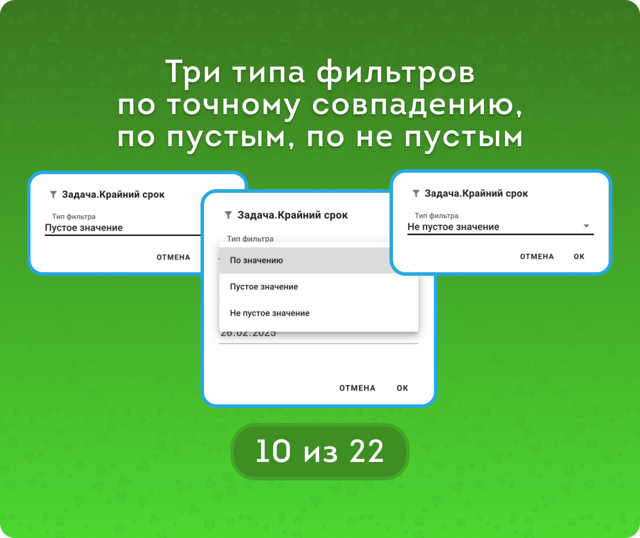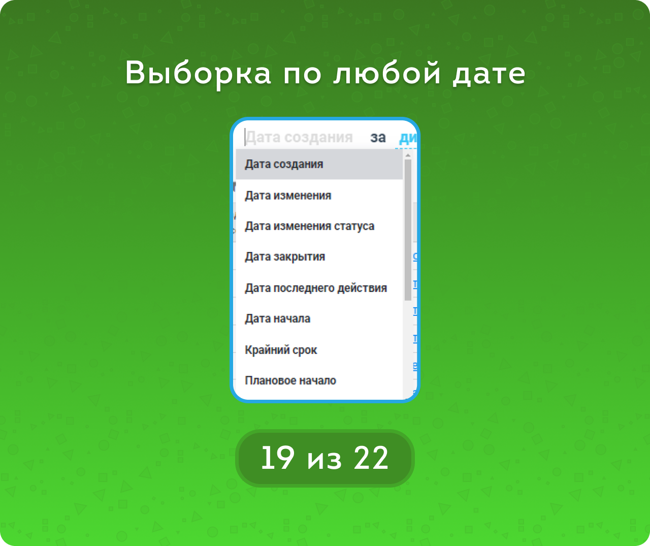 Гибкая работа с датами — выборка по любому типу дат (например, по Крайнему сроку или Дате закрытия).