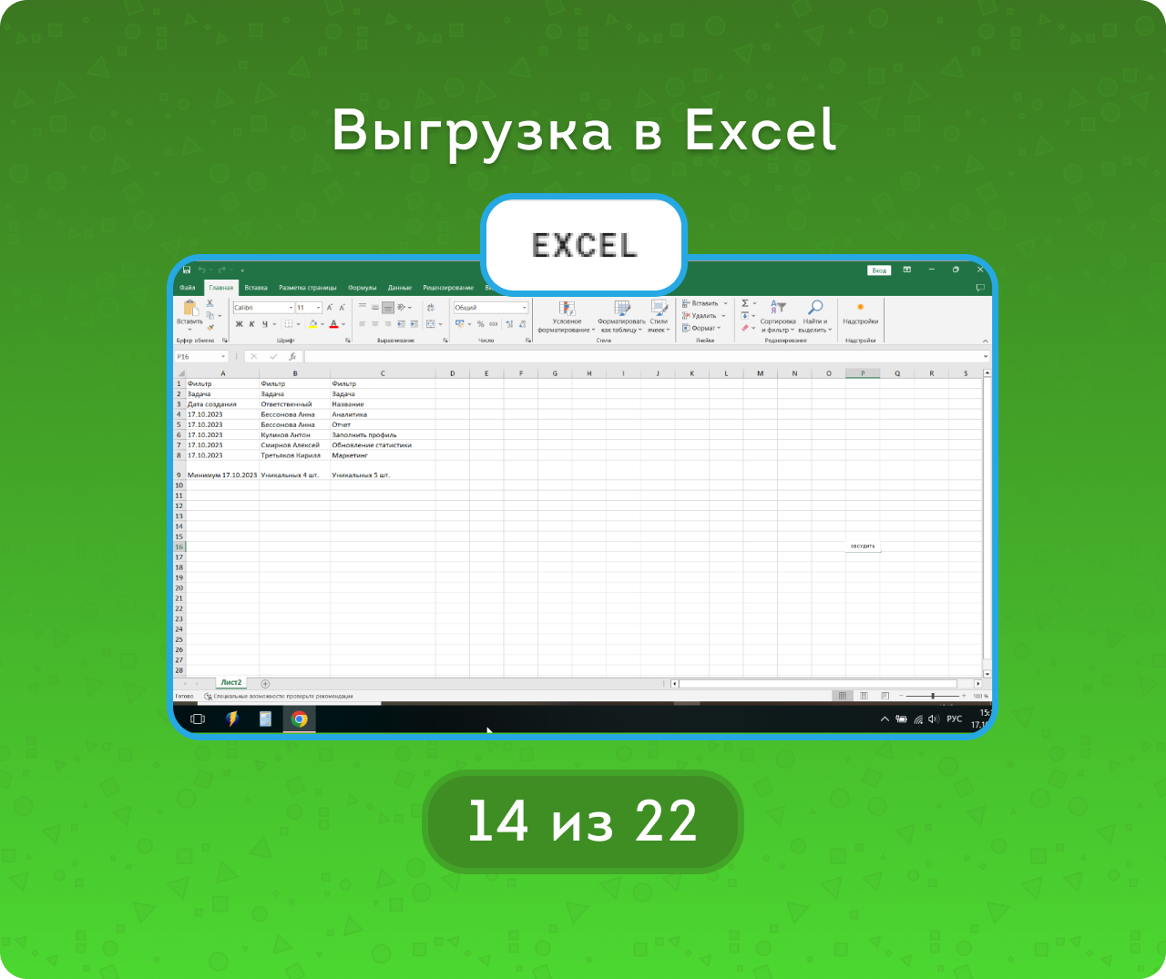 Выгружать готовый отчёт в Google Таблицы и Excel.