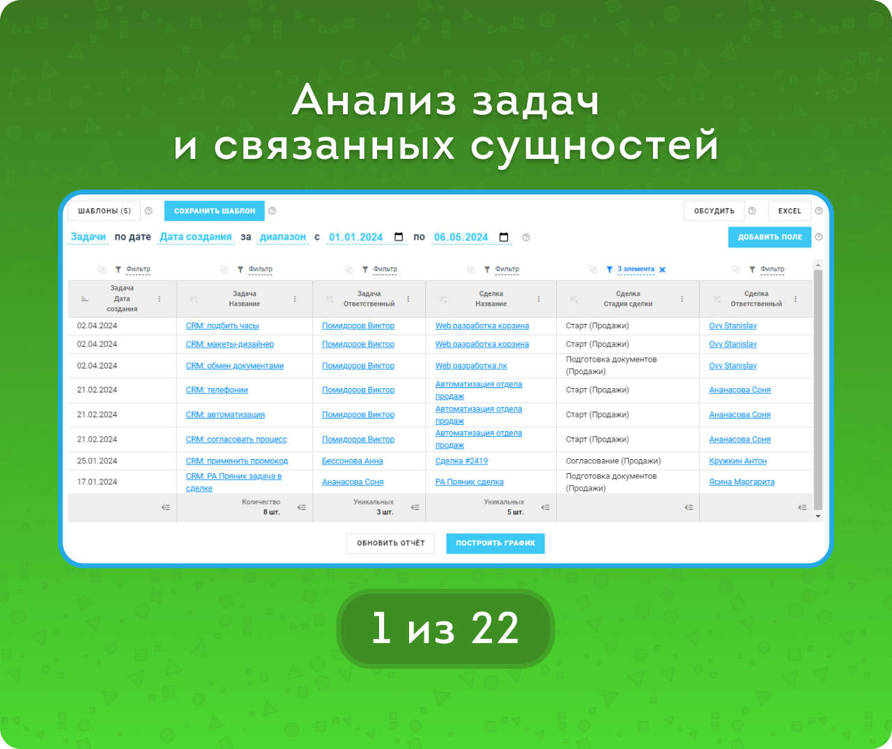 Гибкие отчёты по Задачам и связанным с ними сущностями CRM. Графики.