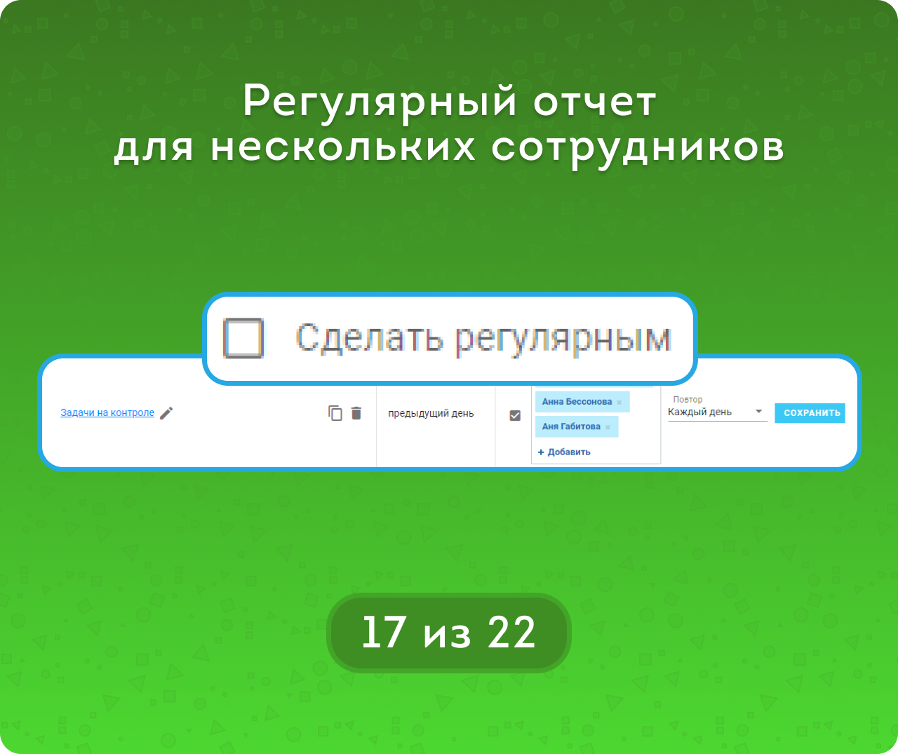 Кроме того, шаблон можно сделать регулярным для публикации в ленту Новостей. Эта функция доступна только администраторам портала. Почитать про особенности и настройки регулярного отчета можно тут.