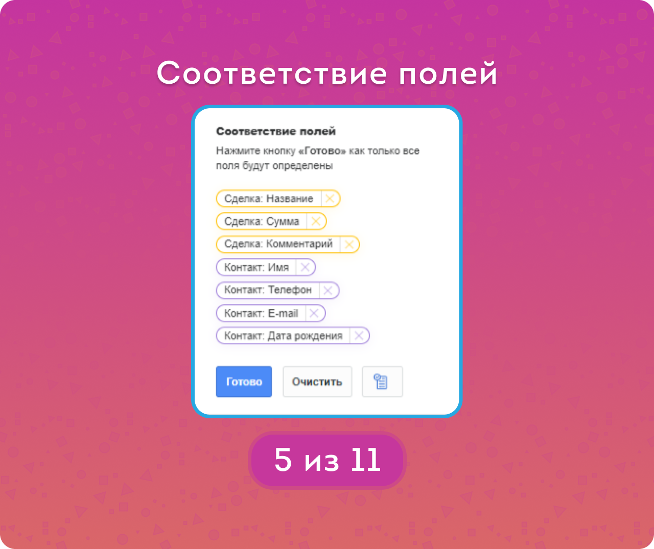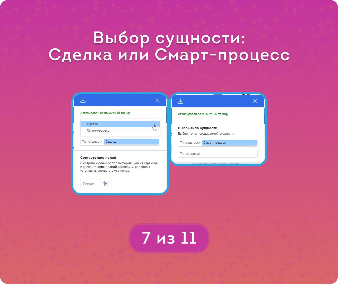 Вы можете выбирать, что создавать: Сделку или Смарт-процесс с Контактом, а также воронку и ответственного сотрудника. Парсер запоминает выбранные настройки и сопоставленные поля, и при следующих использованиях сопоставляет их автоматически. Подробную инструкцию по установке и настройке вы можете найти на стартовой странице приложения.