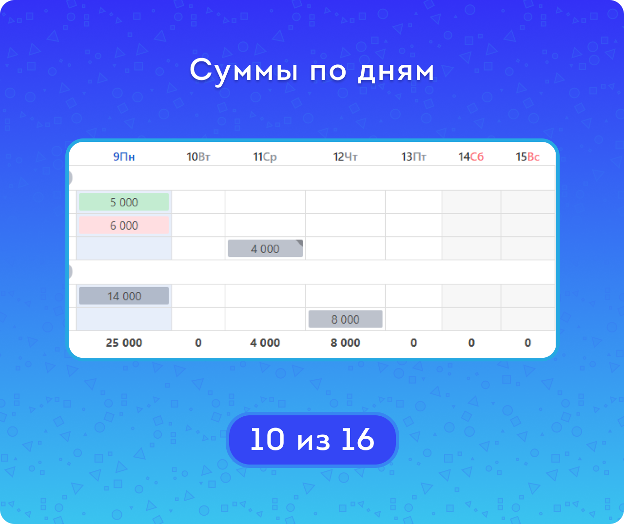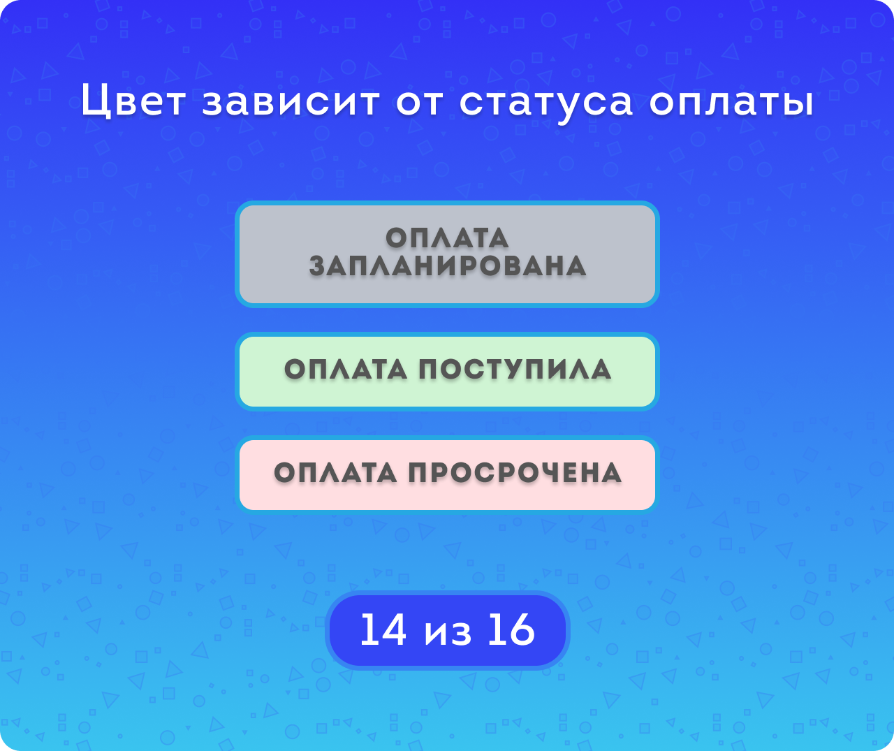 Наглядность и простота использования. Не требуется что-то дополнительно настраивать – вы сразу увидите всю нужную вам информацию. Визуальное выделение оплаченных, ожидаемых и просроченных оплат поможет в восприятии.