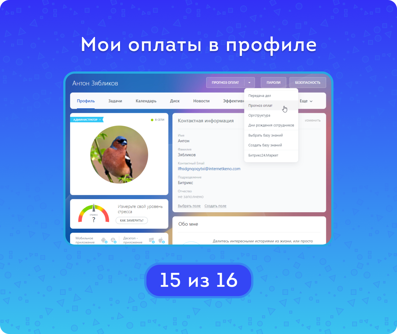 Для повседневной работы менеджеров по продажам удобно просматривать из встройки в профиль пользователя, там можно увидеть «собственные» оплаты.