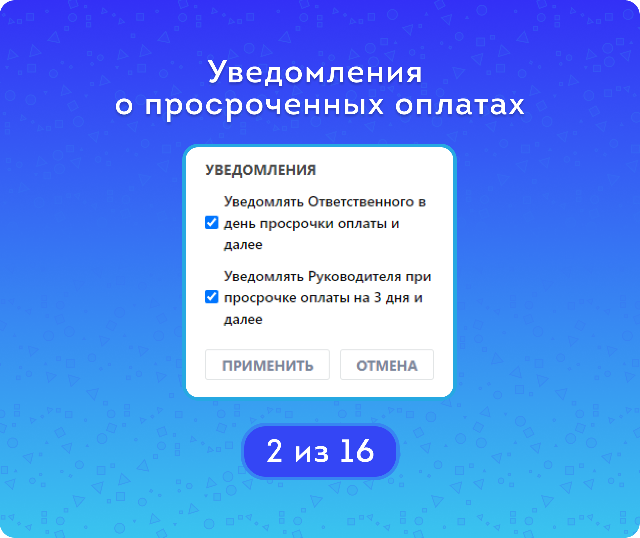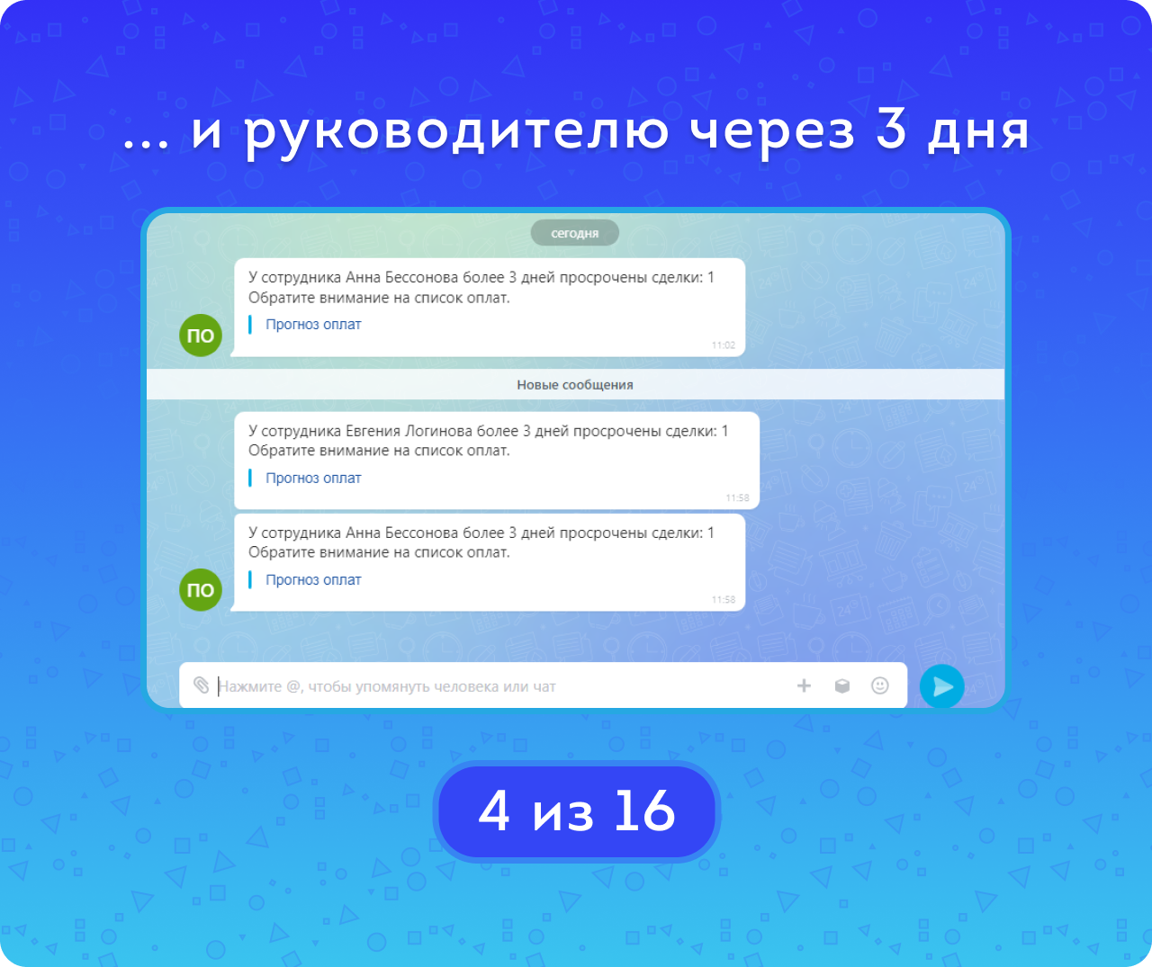 — Ответственному менеджеру в день просрочки оплаты и далее;