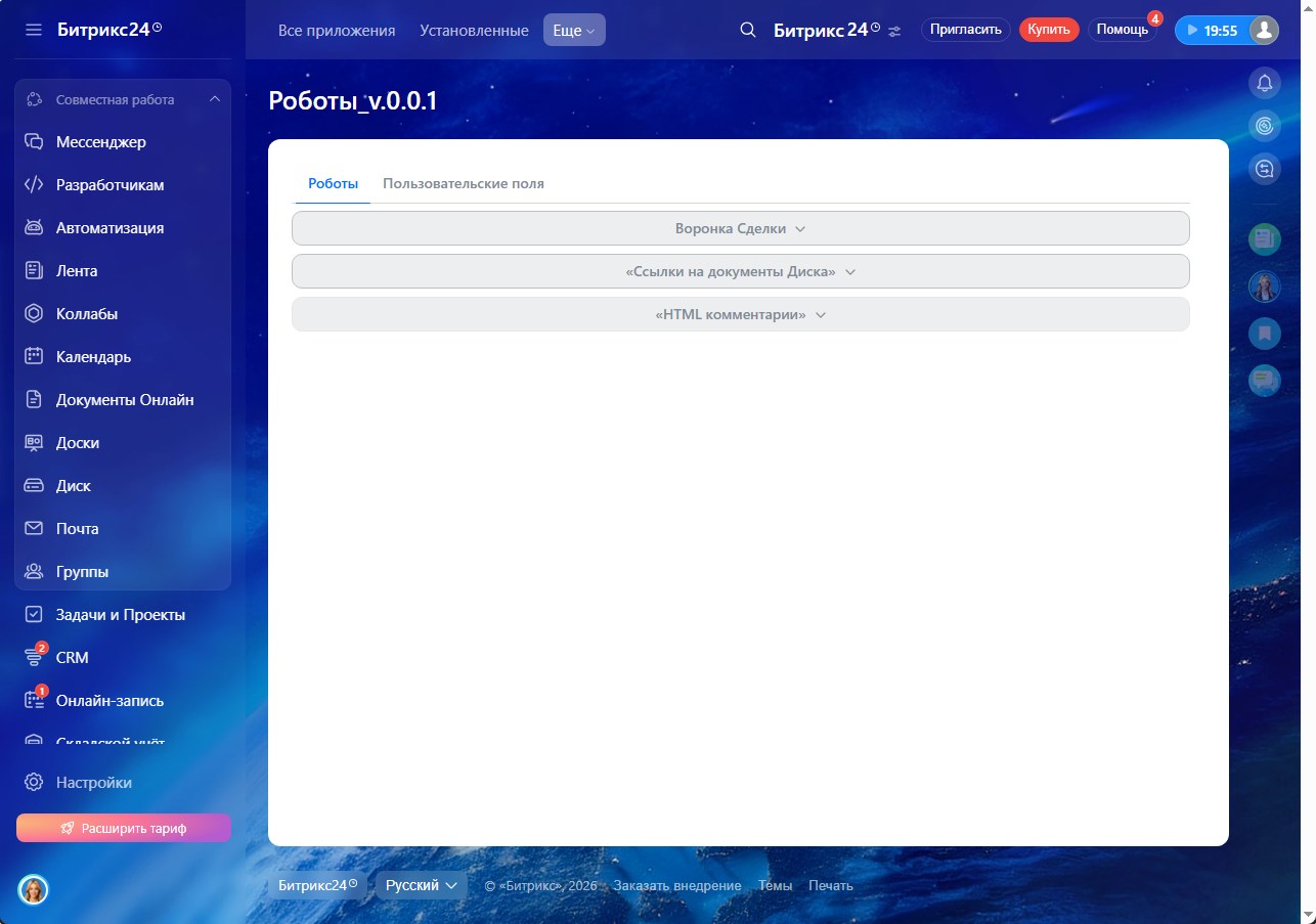 Данные роботы будут полезны для компаний, использующих Битрикс24 для автоматизации бизнес-процессов. Они позволяют расширить функциональность Битрикс24 за счет автоматизации операций и интеграции различных данных.