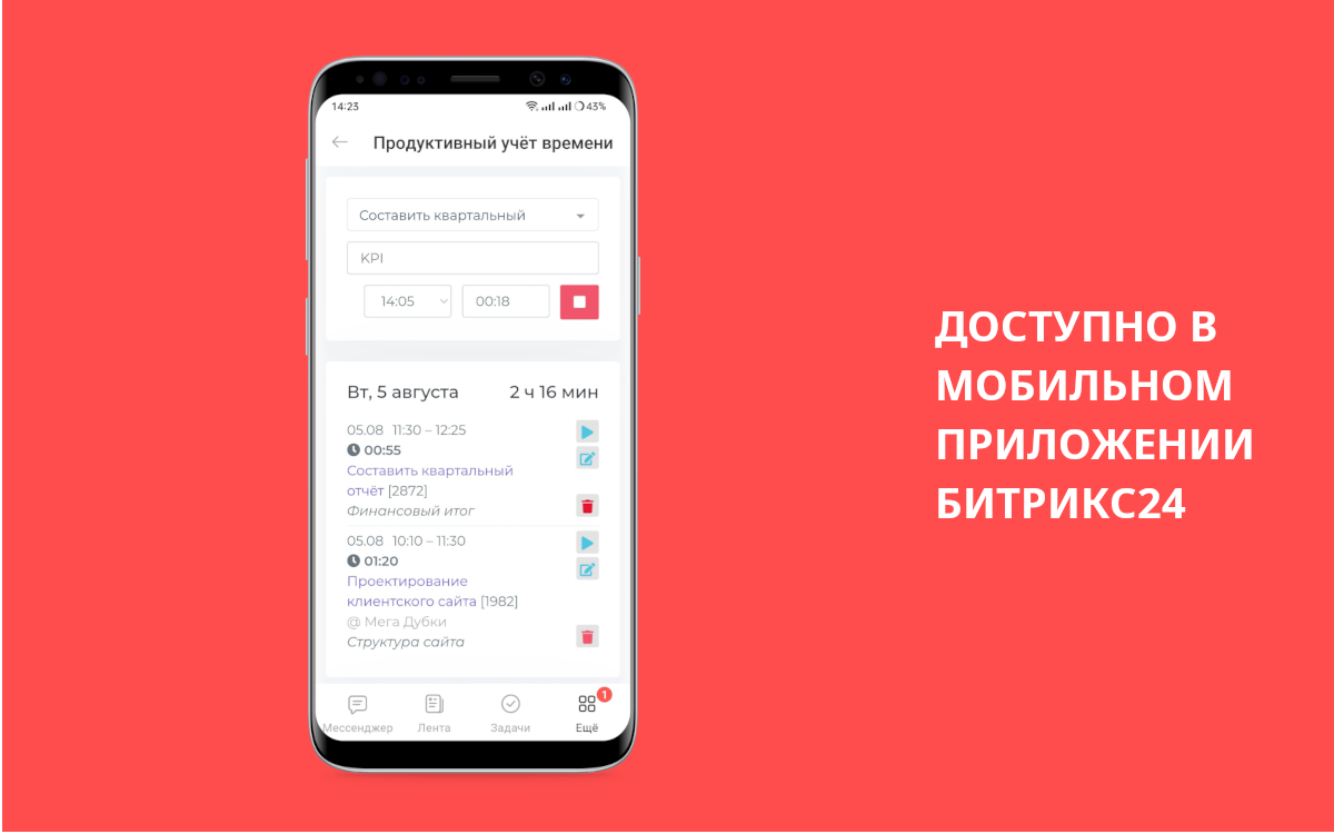 Важно! Трекинг задач осуществляется вручную самим исполнителем. Приложение не следит за его активностью и не фиксирует её!