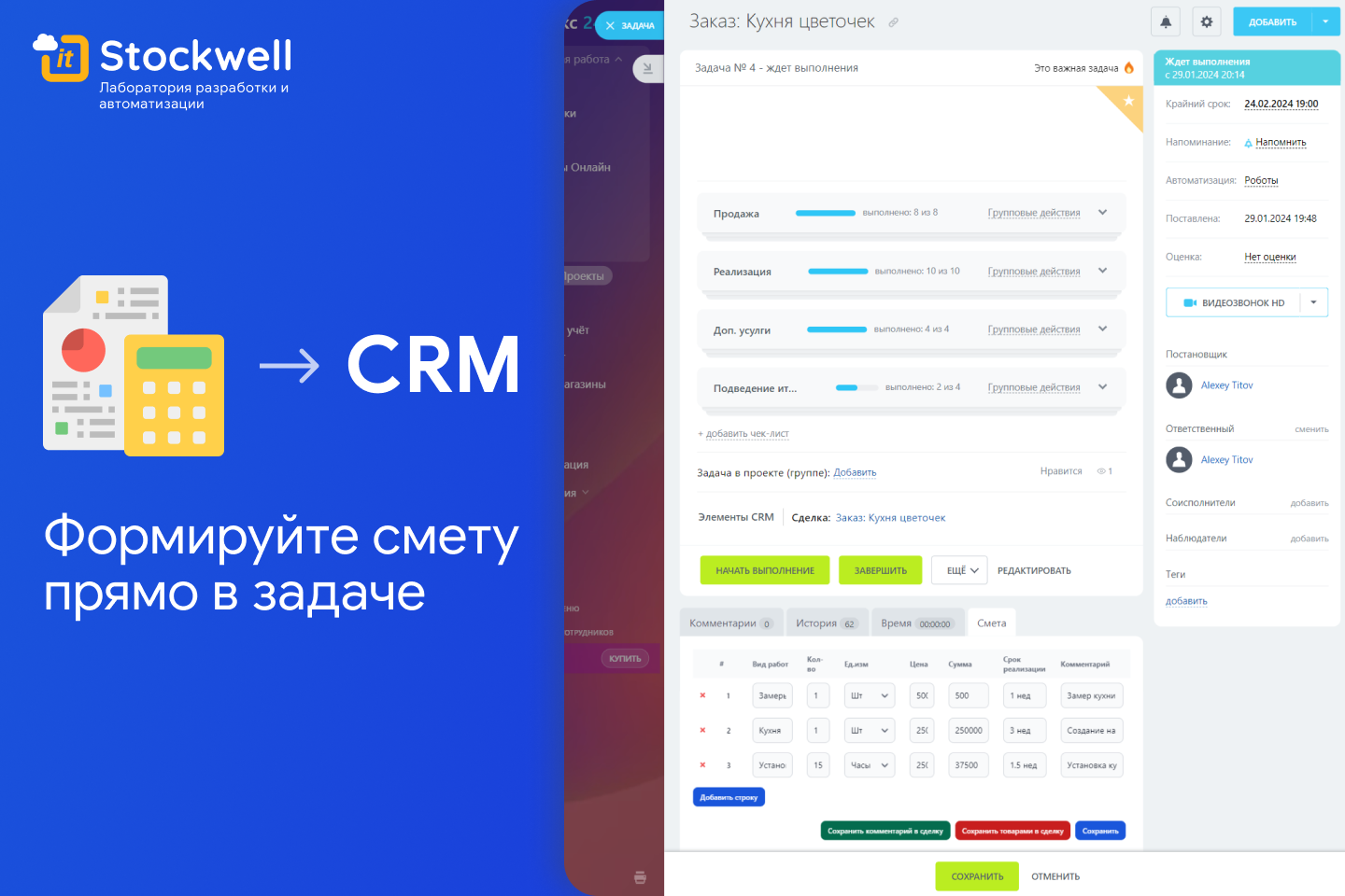 - Чистота данных: Избегайте засорения CRM лишней информацией, так как сметы и их обсуждения хранятся непосредственно в контексте задачи.