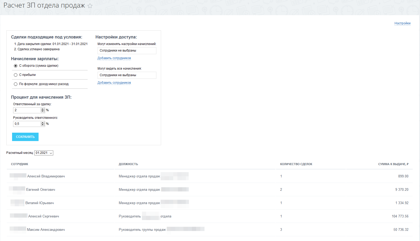 В отделе продаж рано или поздно наступает тот момент, когда количество сделок и менеджеров становится таким, что вручную рассчитать каждому сотруднику зарплату становится очень сложно.