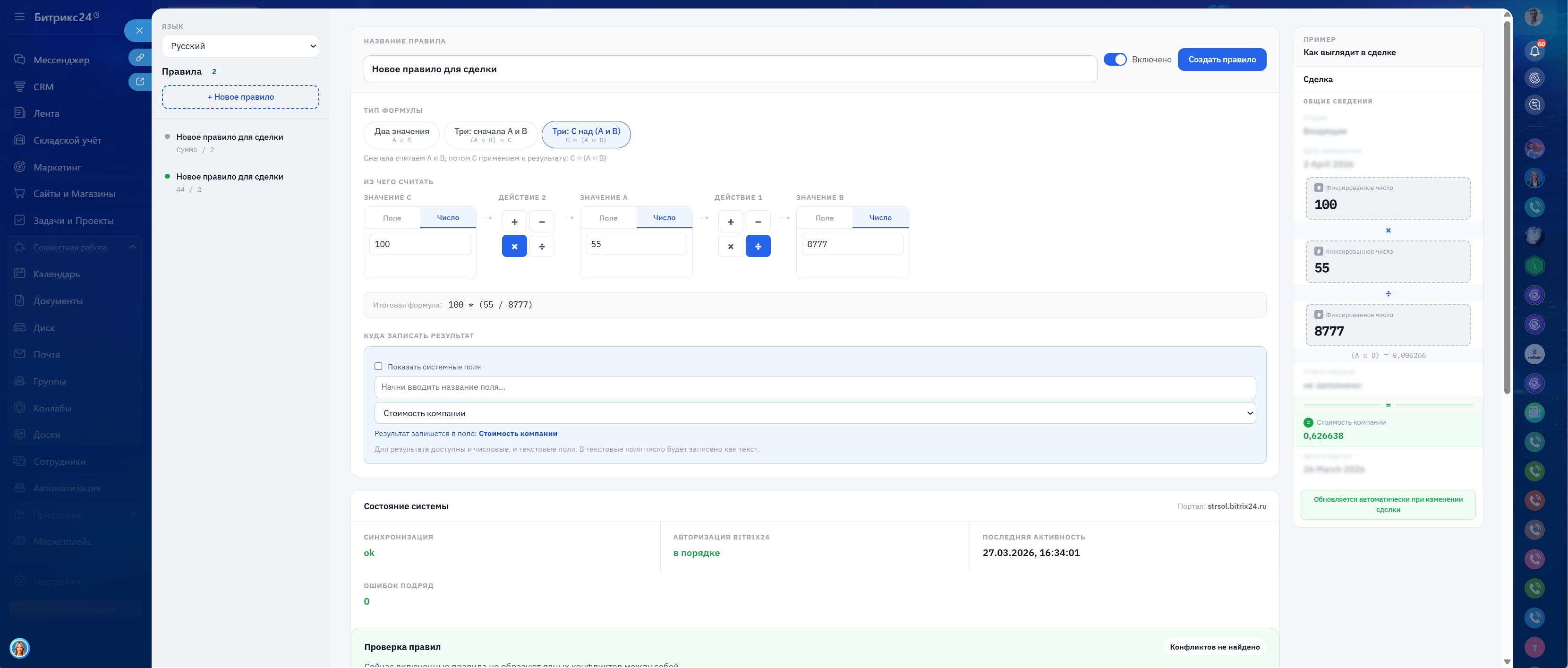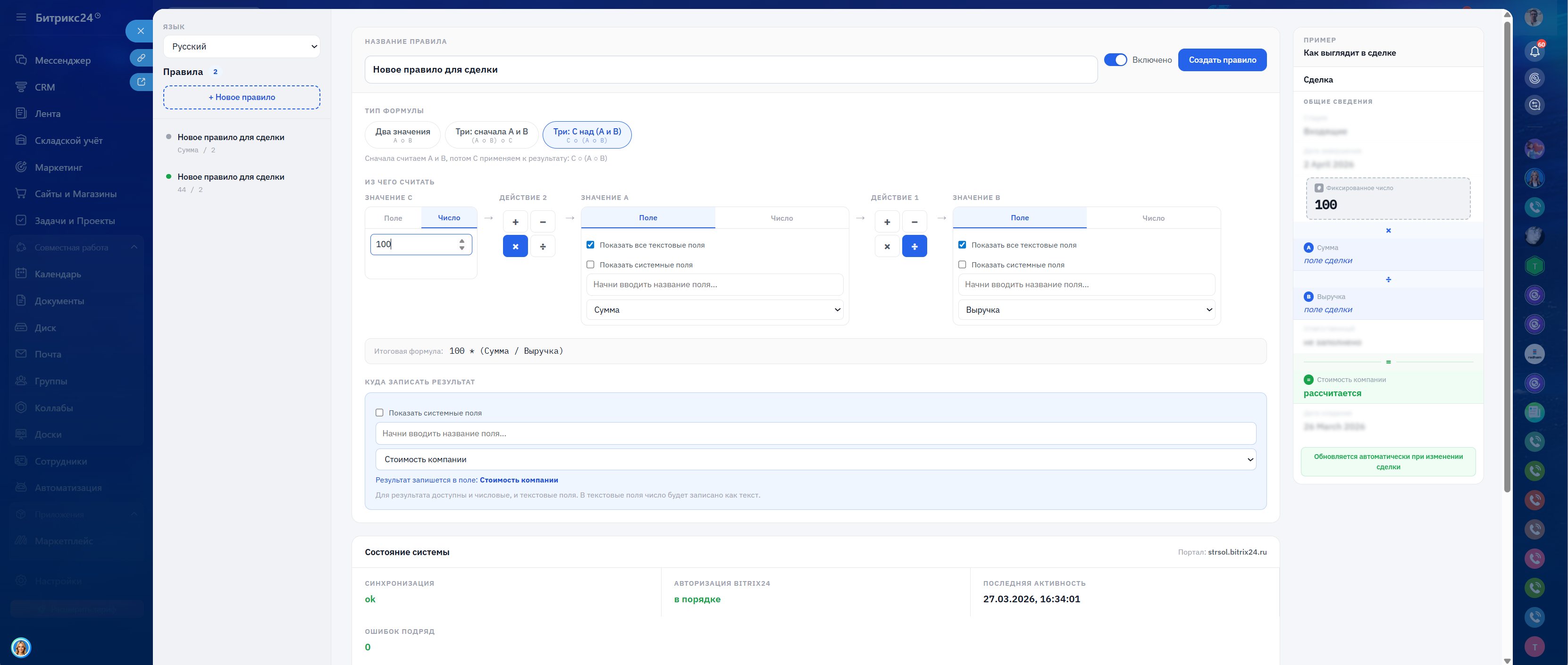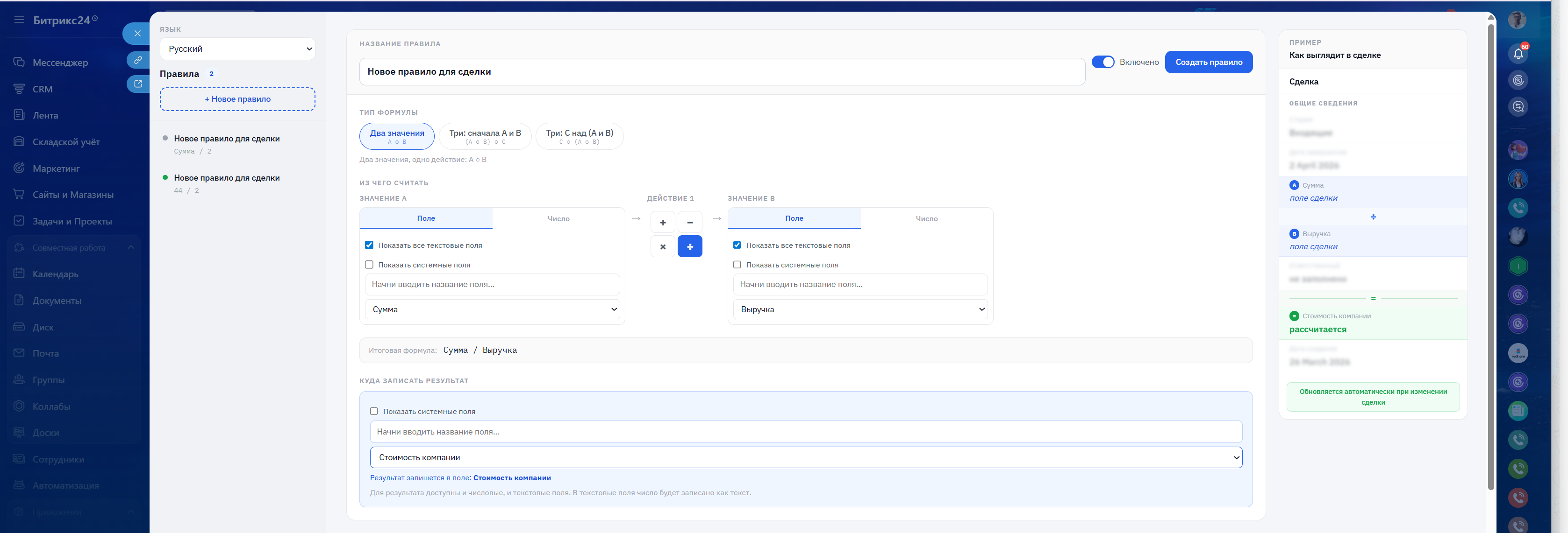 Приложение «Вычисляемые поля для сделок» помогает автоматически рассчитывать значения в полях сделки.