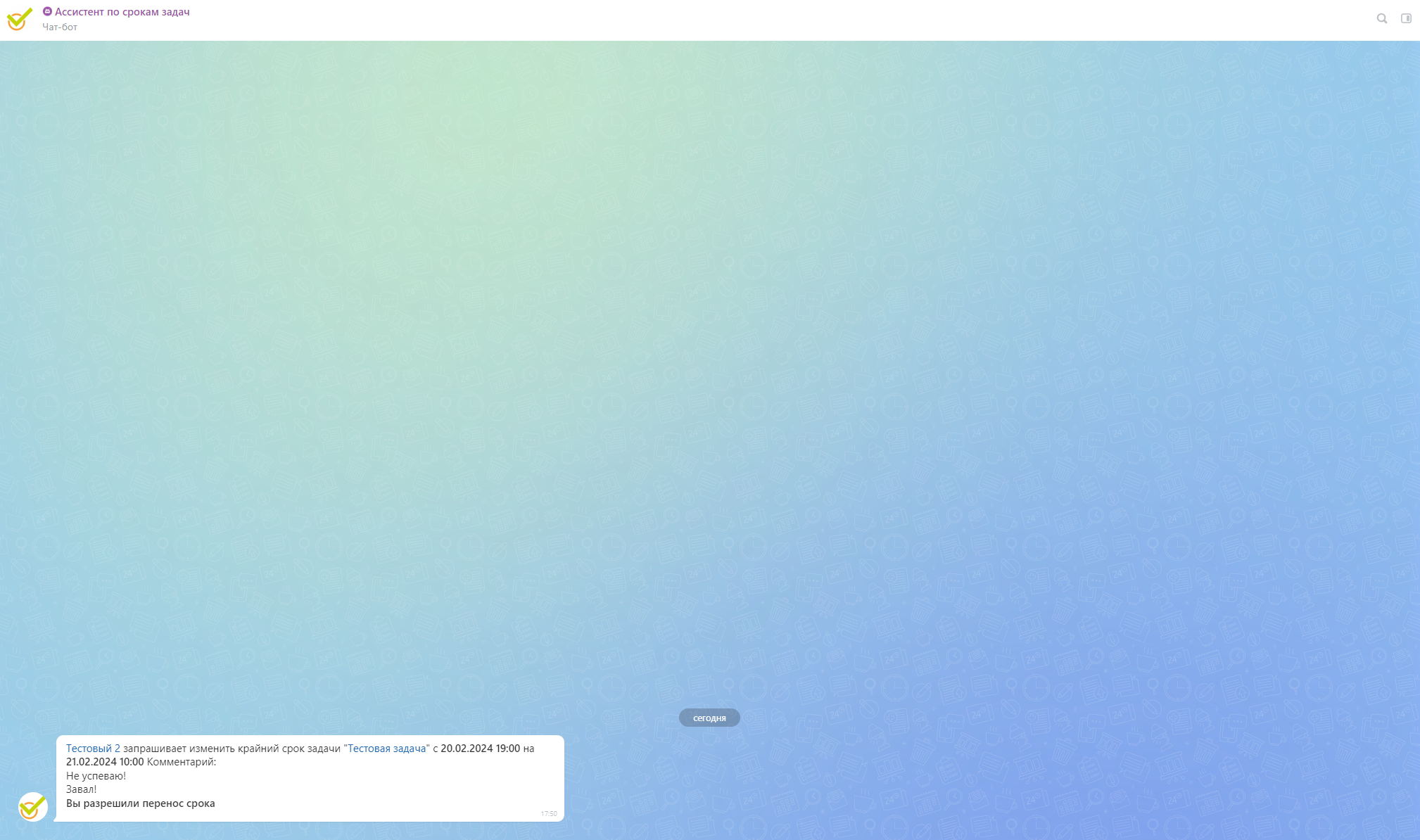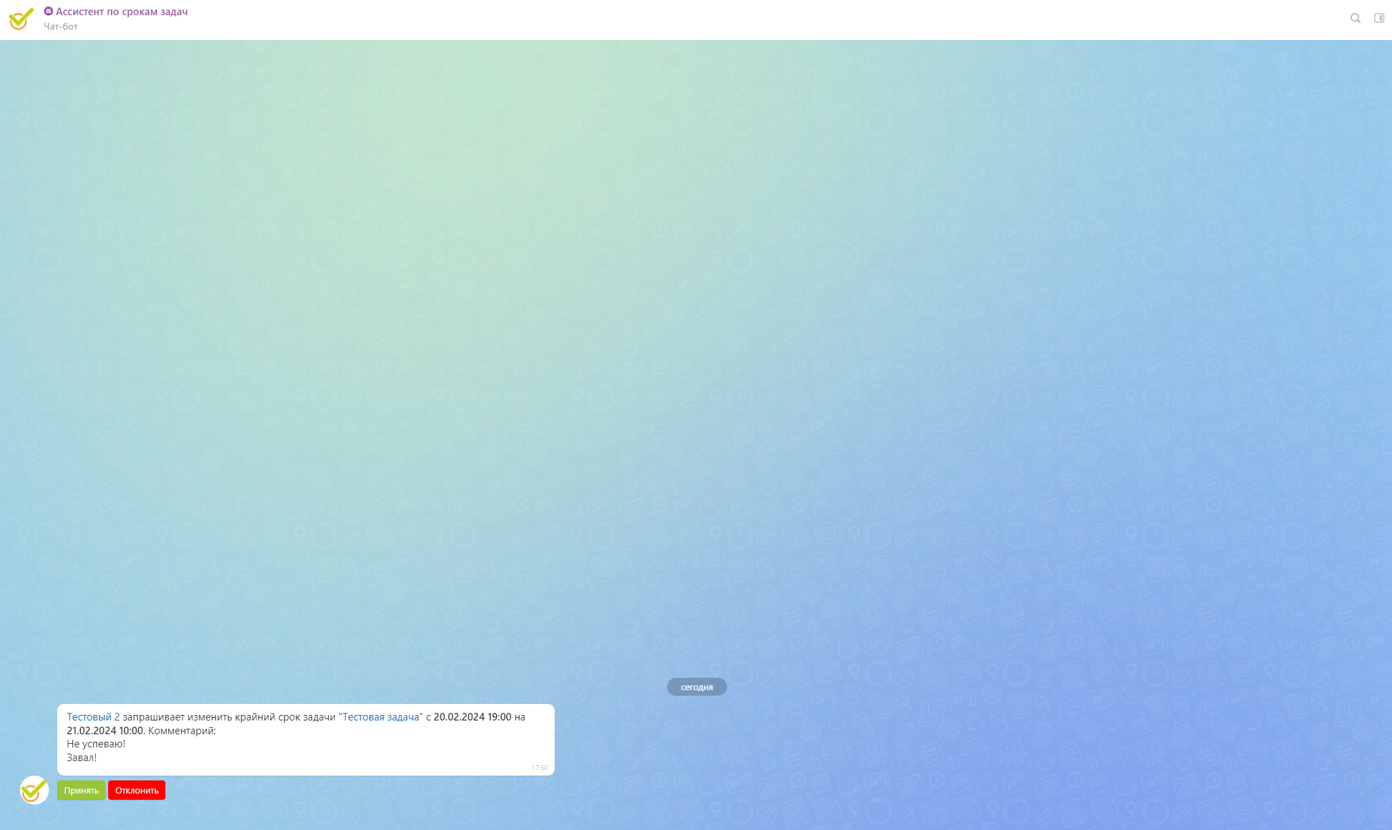 Постановщику в специальном чате придет уведомление о том, что имеется запрос крайнего срока, где он сразу же сможет принять решение о продлении.