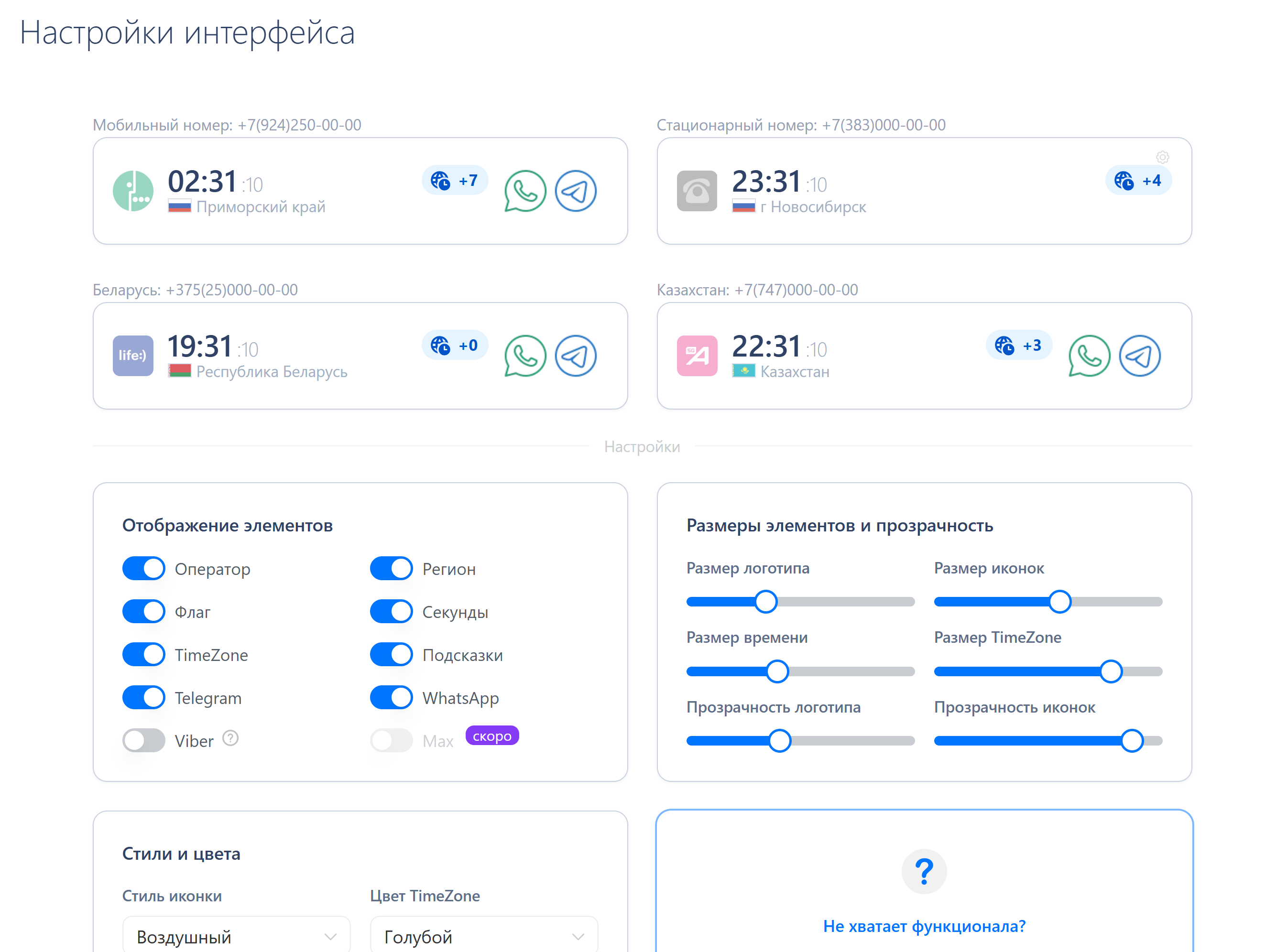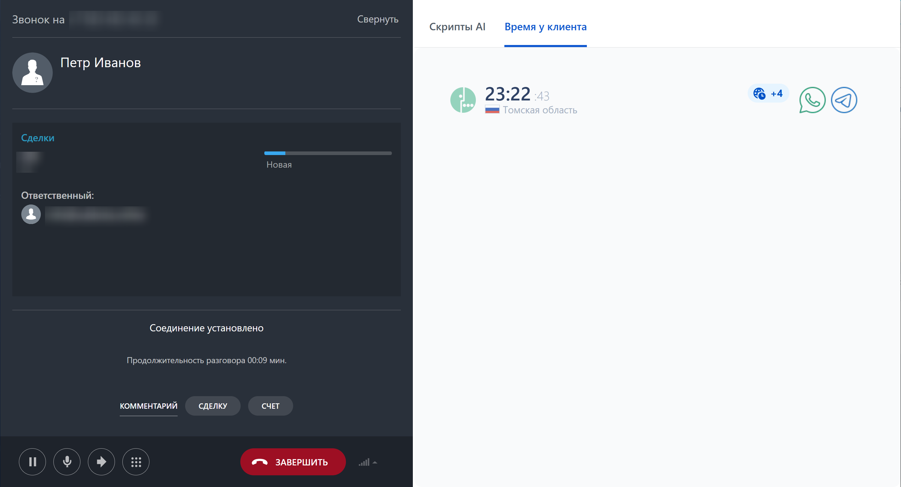 - Автоматическое определение региона и местного времени клиента по номеру телефона