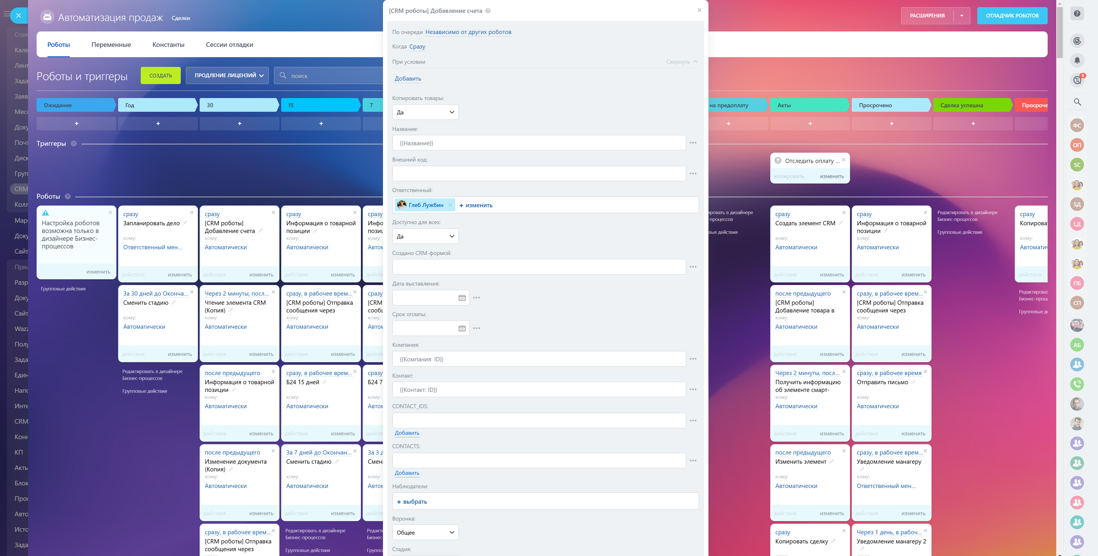 Смогли реализовать сложную цепочку отработки лидов и сделок с использованием роботов приложения!