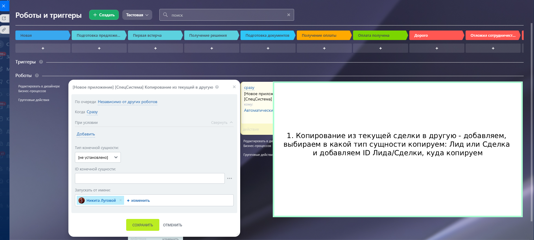 Данное приложение позволяет переносить дела, комментарии, звонки, письма между лидами и сделками