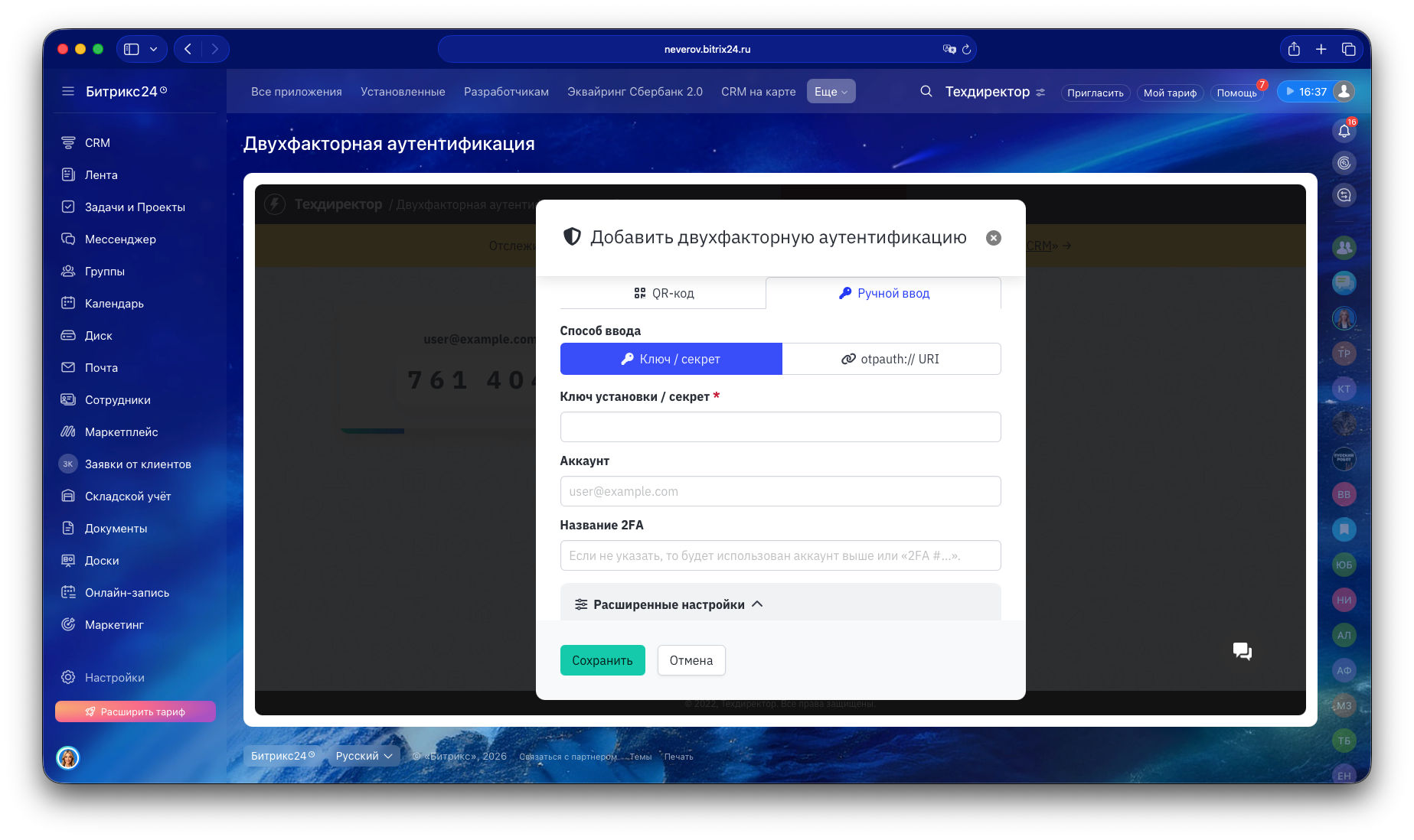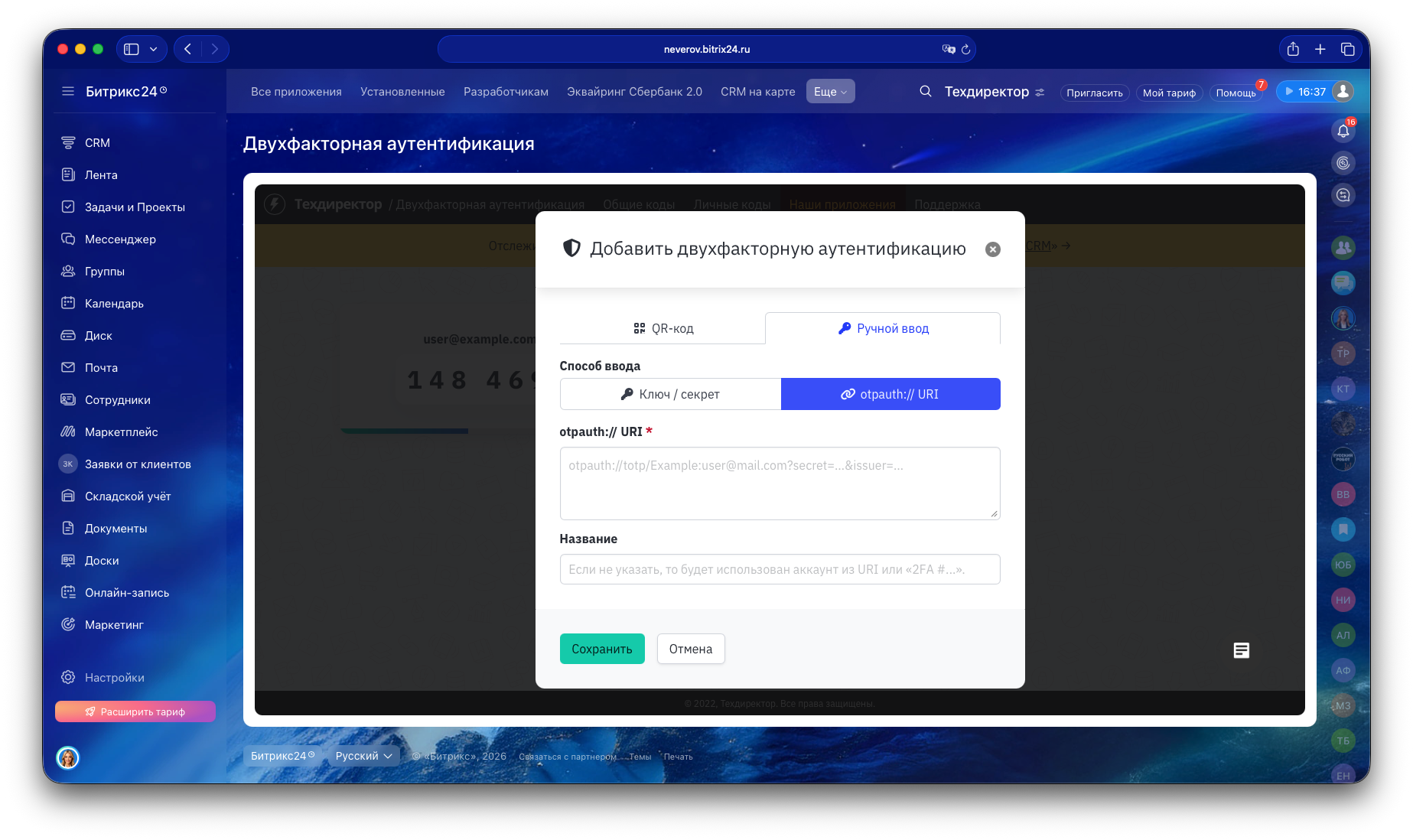 хранение и использование OTP-кодов прямо в Битрикс24;