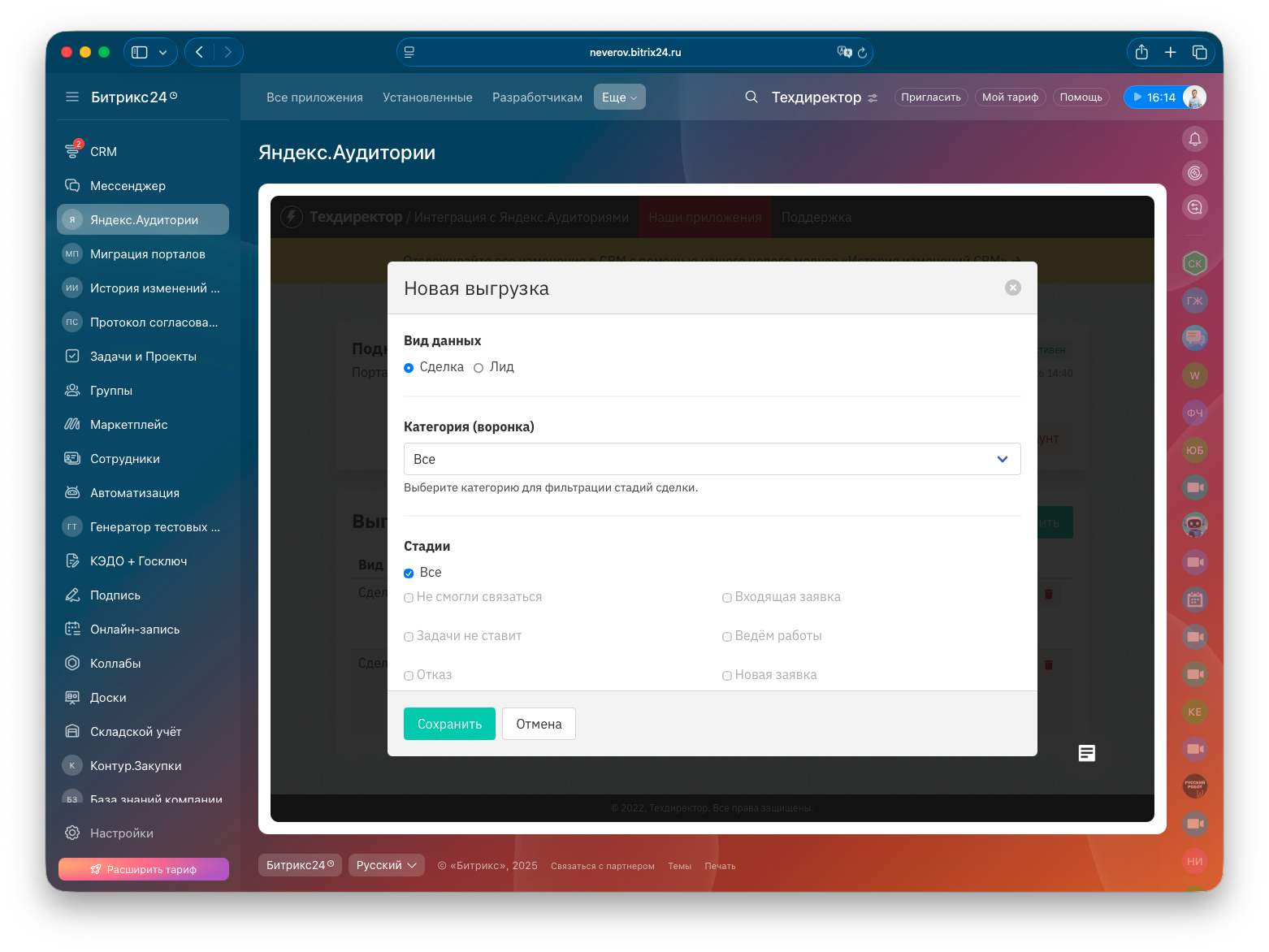 Модуль предназначен для автоматической передачи данных из CRM Битрикс24 в Яндекс.Аудитории с целью последующего точного таргетинга рекламы в Яндекс.Директ.