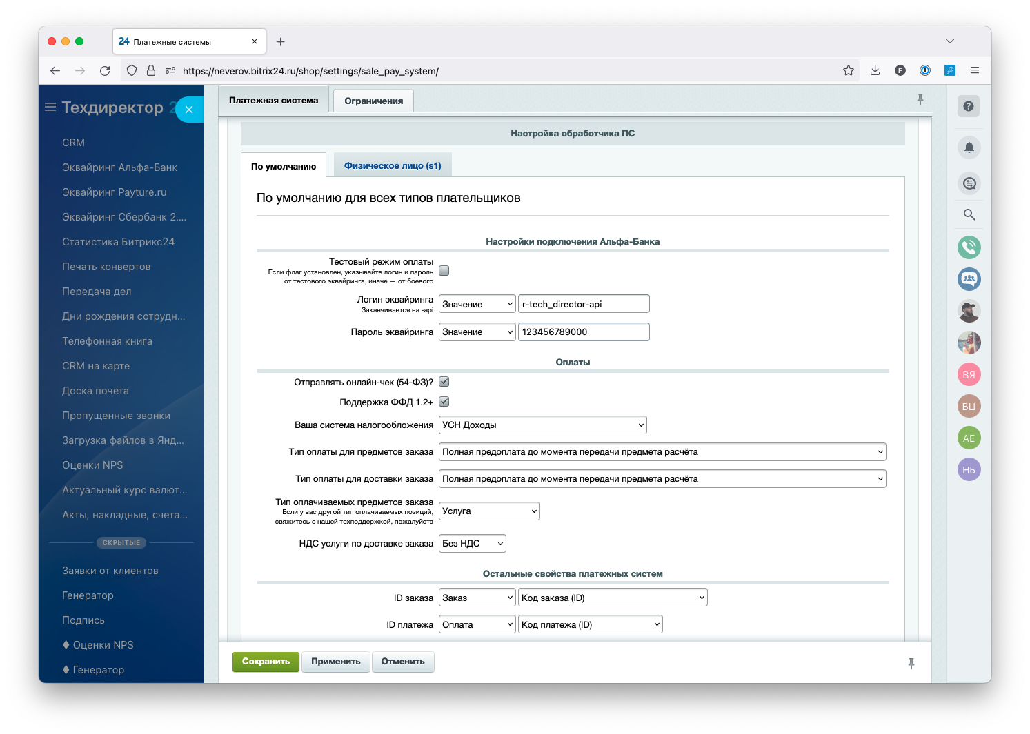 Интеграция с интернет-эквайрингом Альфа-Банка для приём онлайн-платежей с банковских карт Visa, MasterCard, MIR (Мир), JCB, через СБП (систему быстрых платежей) и Яндекс.Pay