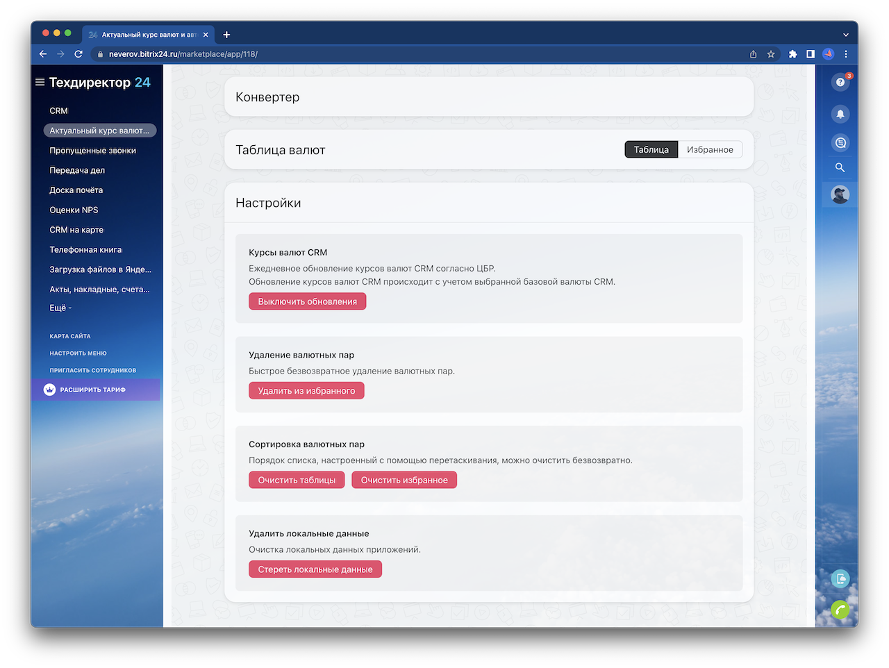 Модуль в автоматическом режиме обновляет курсы валют в настройках вашей CRM-системы и держит их всегда в актуальном состоянии.