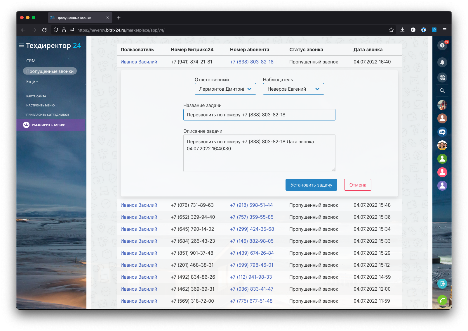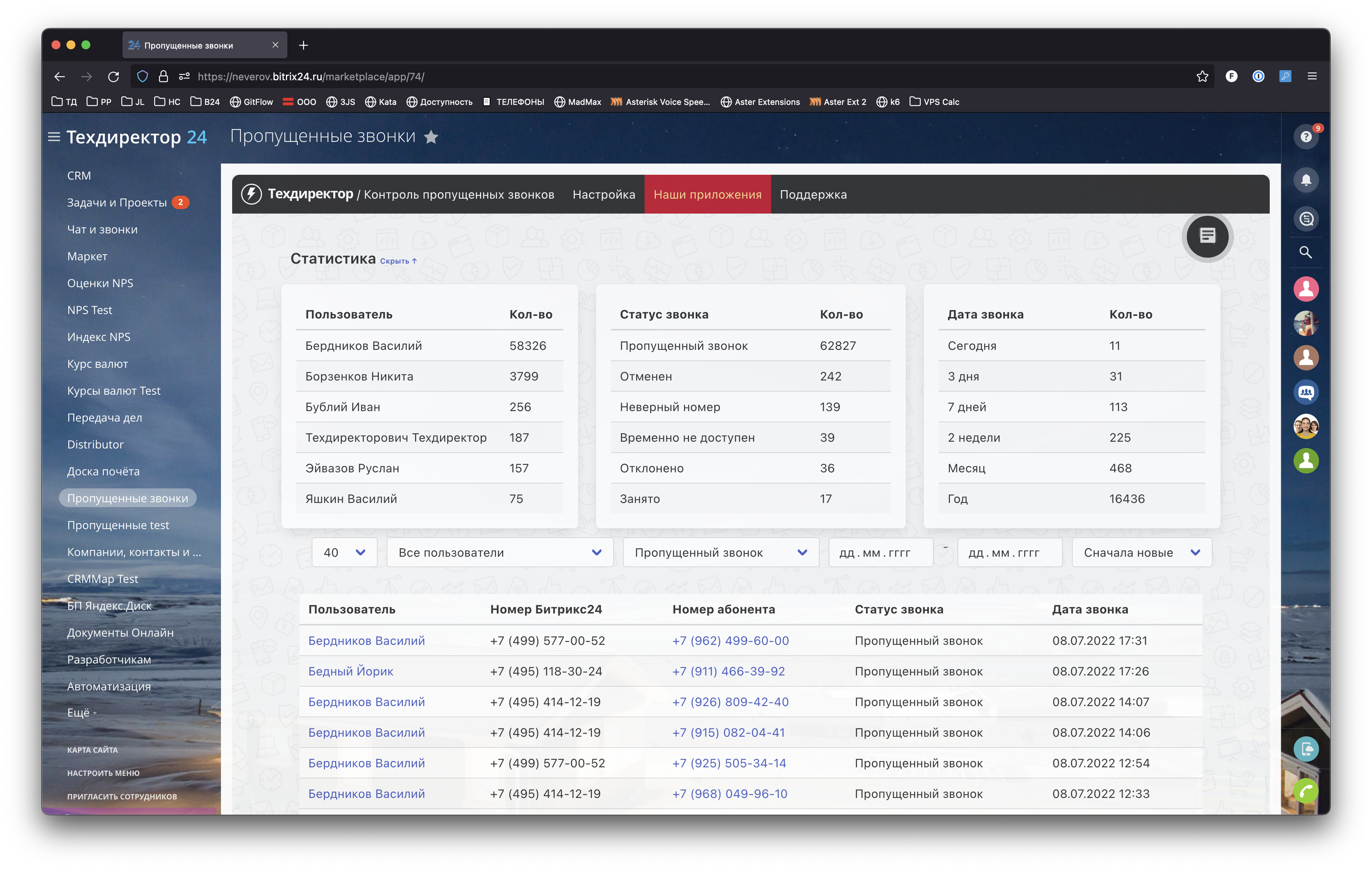 Приложение «Контроль пропущенных звонков» оперативно отображает информацию обо всех звонках вашего портала Битрикс24, которые были пропущены менеджерами, независимо от причин: пропустили звонок, оборвалась связь, было занято — что угодно.